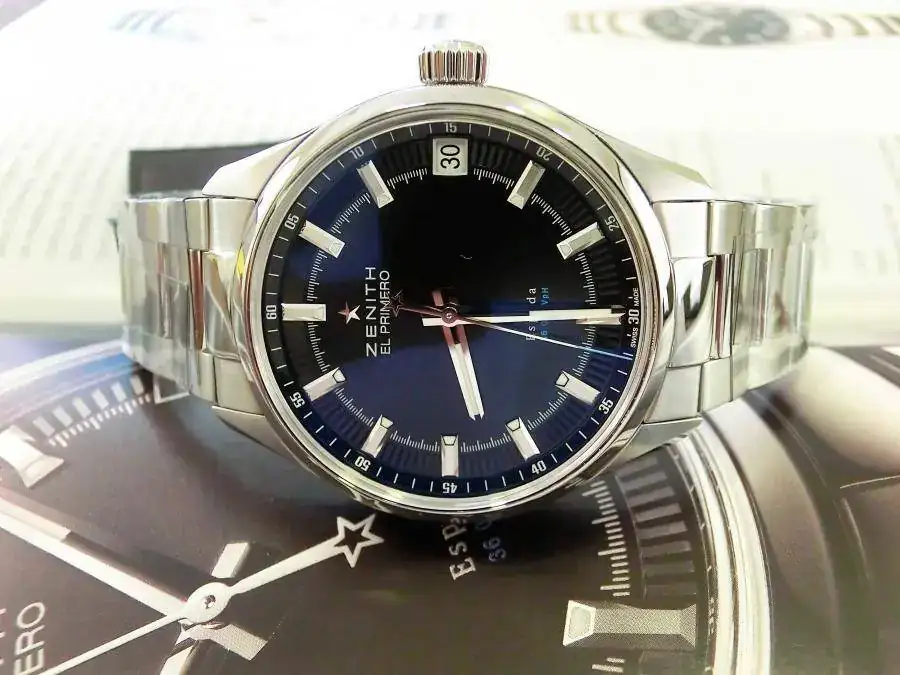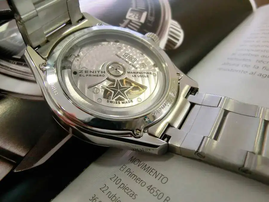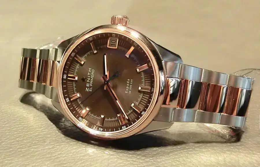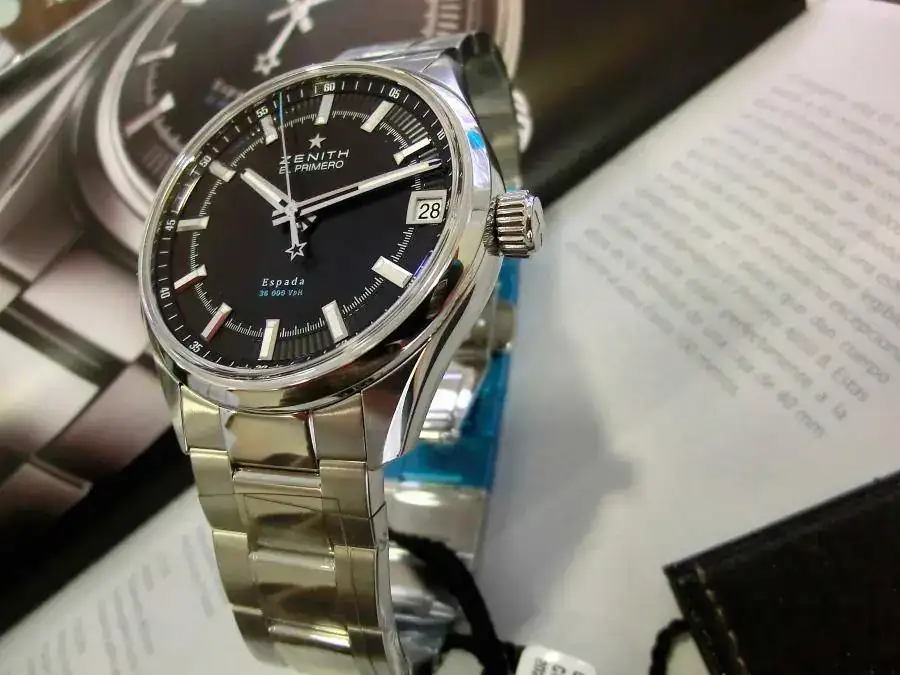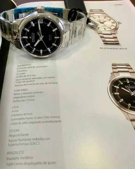 Os habréis fijado que todos los relojes de la línea Espada son de tres agujas (Horas, minutos y y segundos),“El Primero” ha sido modificado ya que la función de cronógrafo no aparece en esta colección. Conserva el calibre con la frecuencia de oscilación de 36.000 alt./hora.