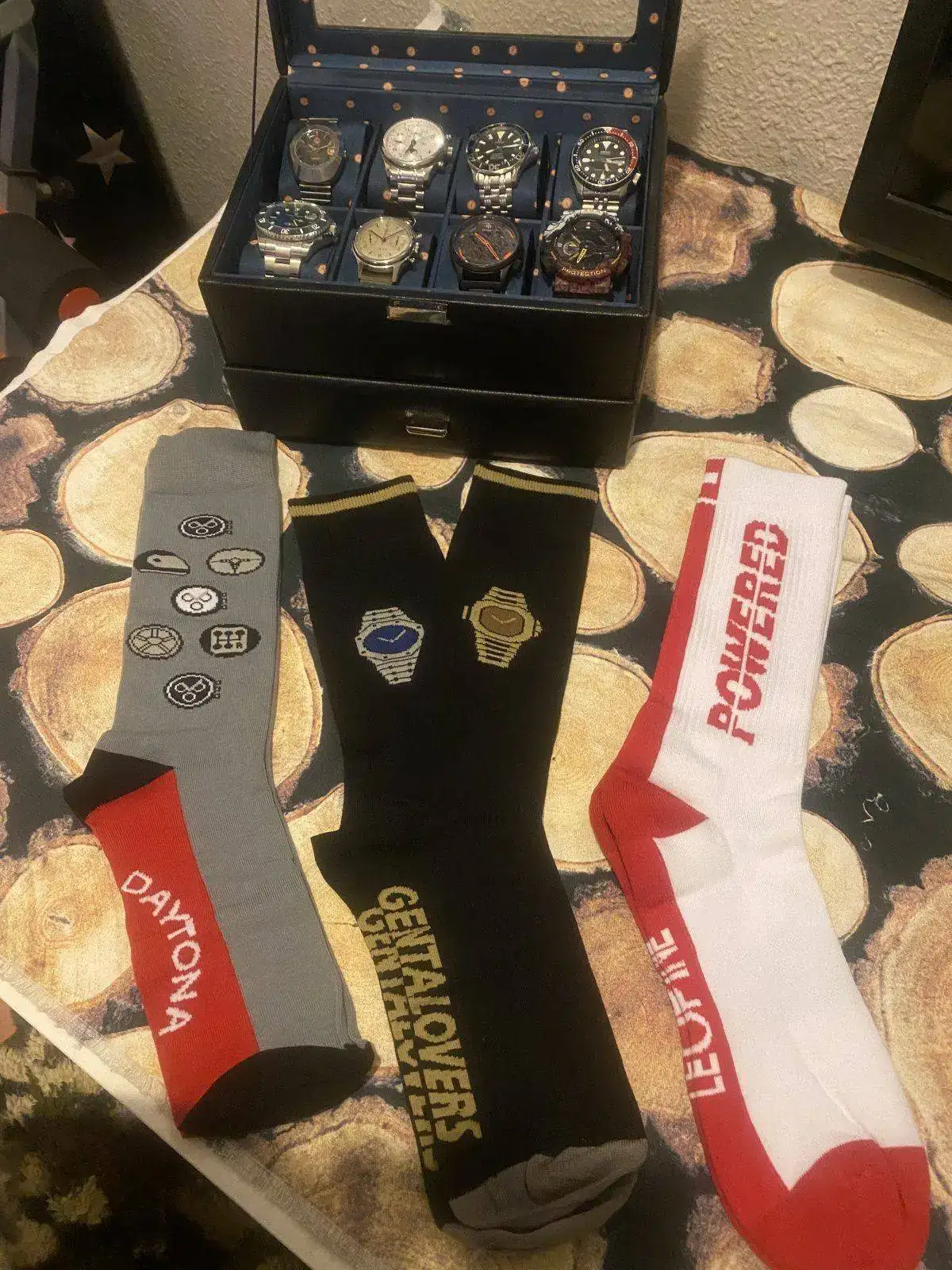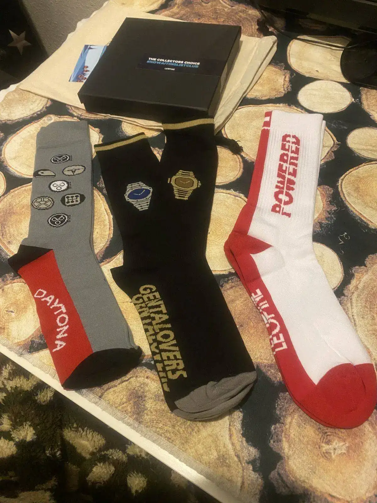 Y last but not least, los premios más divertidos. Tres pares de calcetines (dos veces) edición limitada de Leopine, ideales para WIS (Watch Idiot Savant, en palabras de Time Zone) y que igualmente son lotes distintos y que espero sorprendan agradablemente a los receptores: