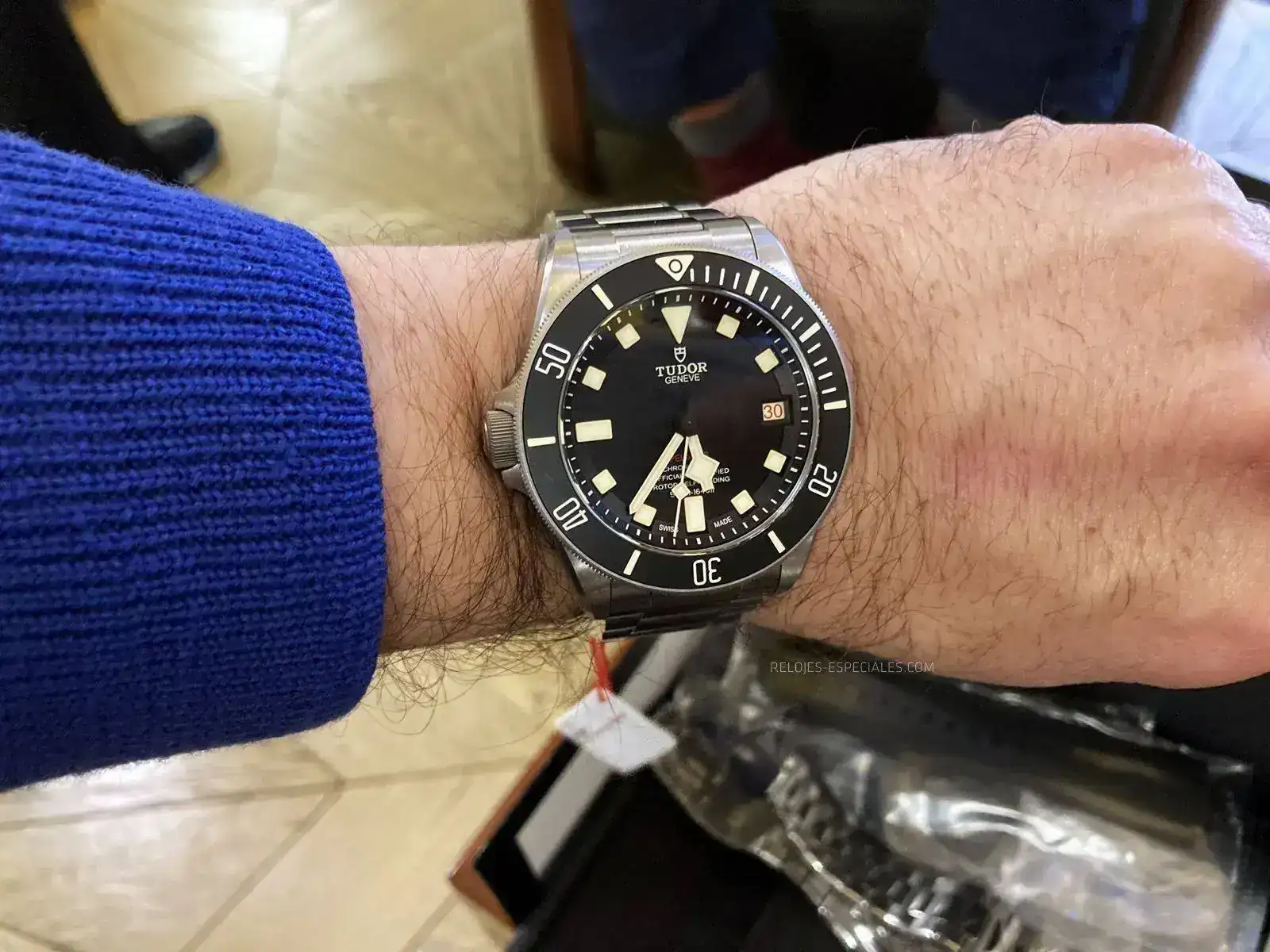 En cuanto el Pelagos es un gran reloj, con unos acabados muy buenos aunque sean en titanio, no soy muy amante de ese metal en relojería pero lo hace mucho más llevable y, al final, seguro que le cojo apremio al metal puesto que es un reloj impresionante. El armis y, sobretodo el cierre, son magníficos. Para mi uno de los mejores que he visto y seguro el mejor en esa categoría de reloj.