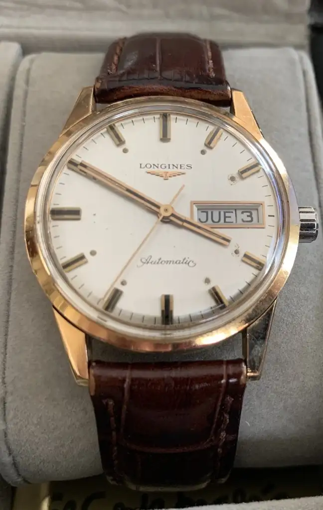 Tambien relojes fundicion de buenas marcas, como este Longines. Catastrofe, el ultimo Longines que lo comprado yo, se doblado el fondo de presion. Nunca en medio siglo me pasado esto, lo vendido rapido el reloj.