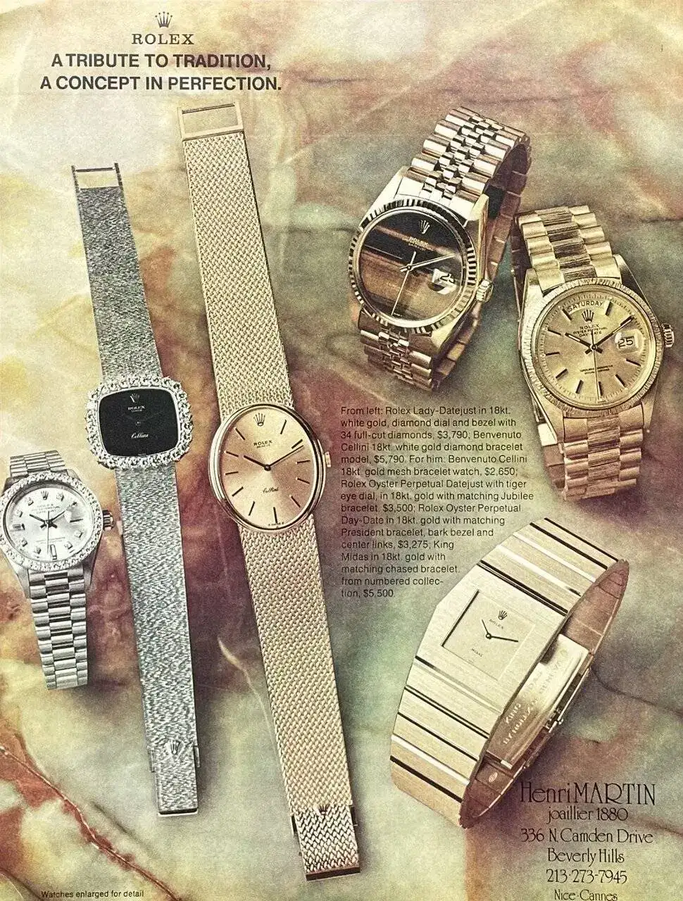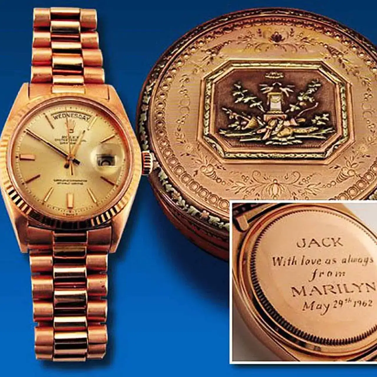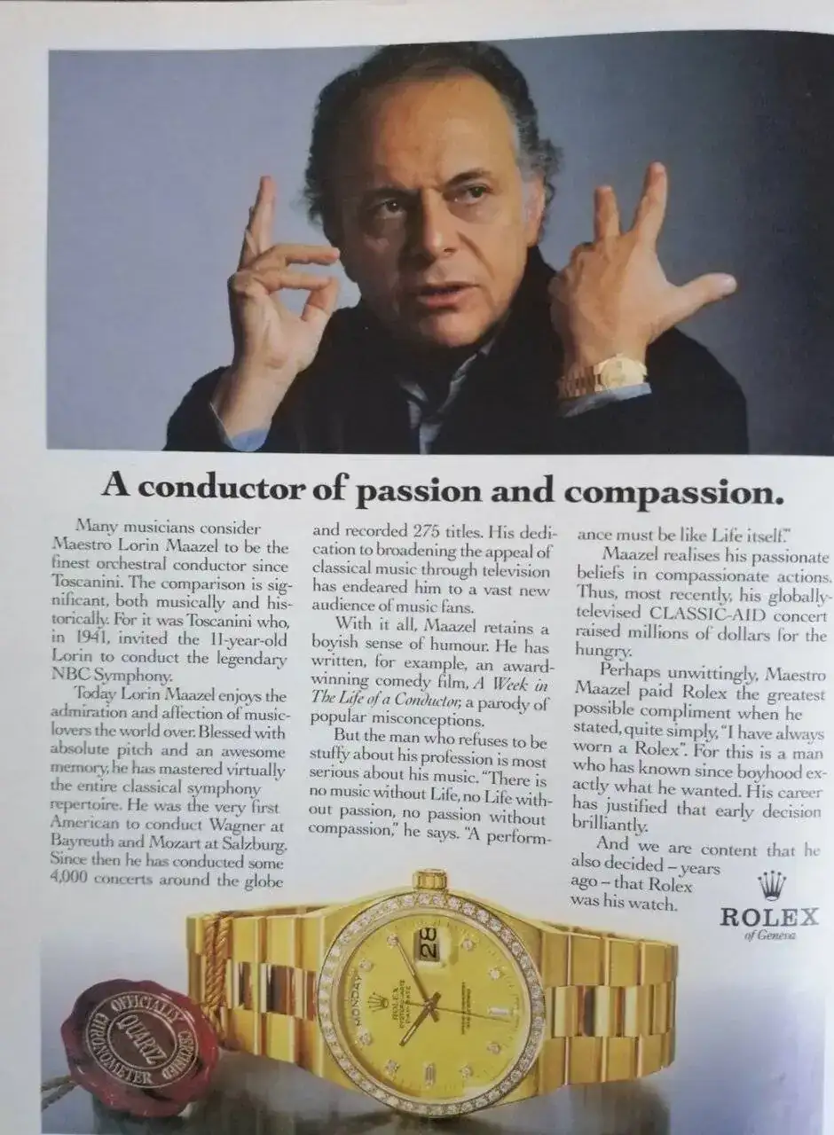 Es por ello, que voy a poner en este hilo unos cuanto menos sorprendentes anuncios de relojes de oro, todos ellos vinculados a personas que destacan en el ámbito profesional(no hablamos de cualidades personales) a nivel mundial. A ellos, como actores y personas de gran poder político no les sientan estos relojes como “cigalas” sino todo lo contrario. Parece que son el equipamiento idóneo para personas que desempeñan esas tareas.