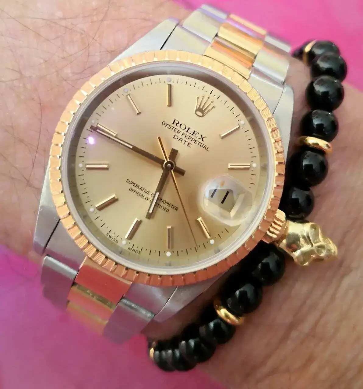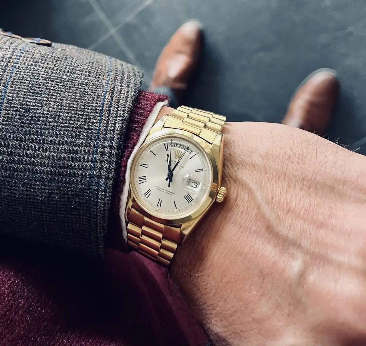 Genial! Da gusto vestir bien y conjuntado con el relojEs muy divertido y una parte muy importante de mi afición relojera: intentar vestir “bien” y que el reloj forme parte de ese intento sea o no dorado. Pero tener algunos relojes dorados en mi visión es esencial.