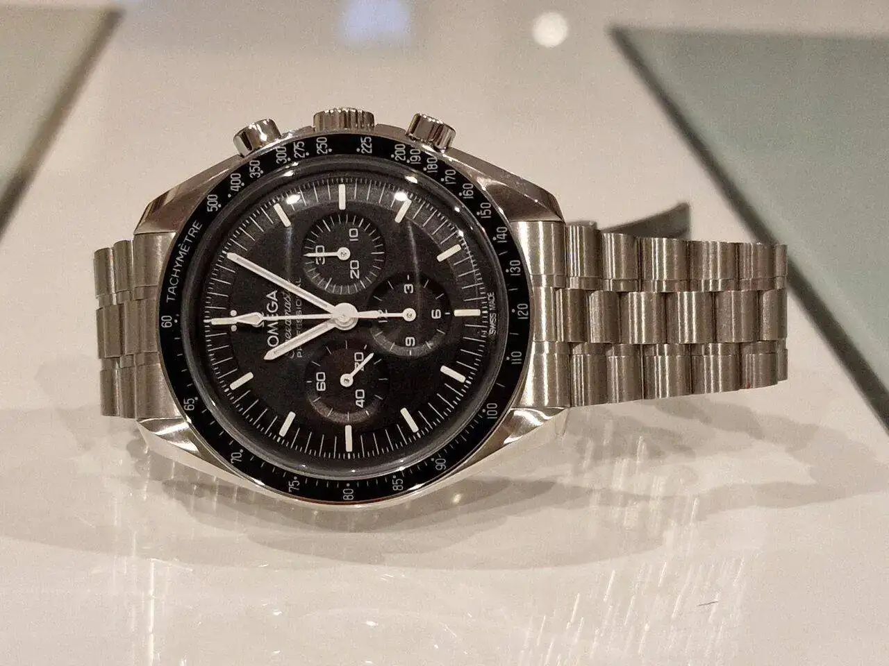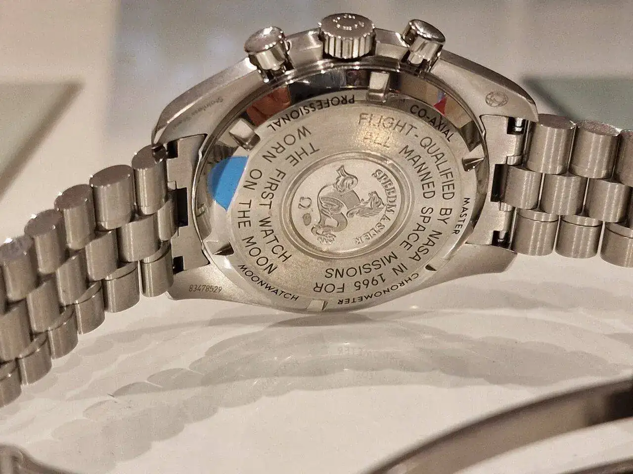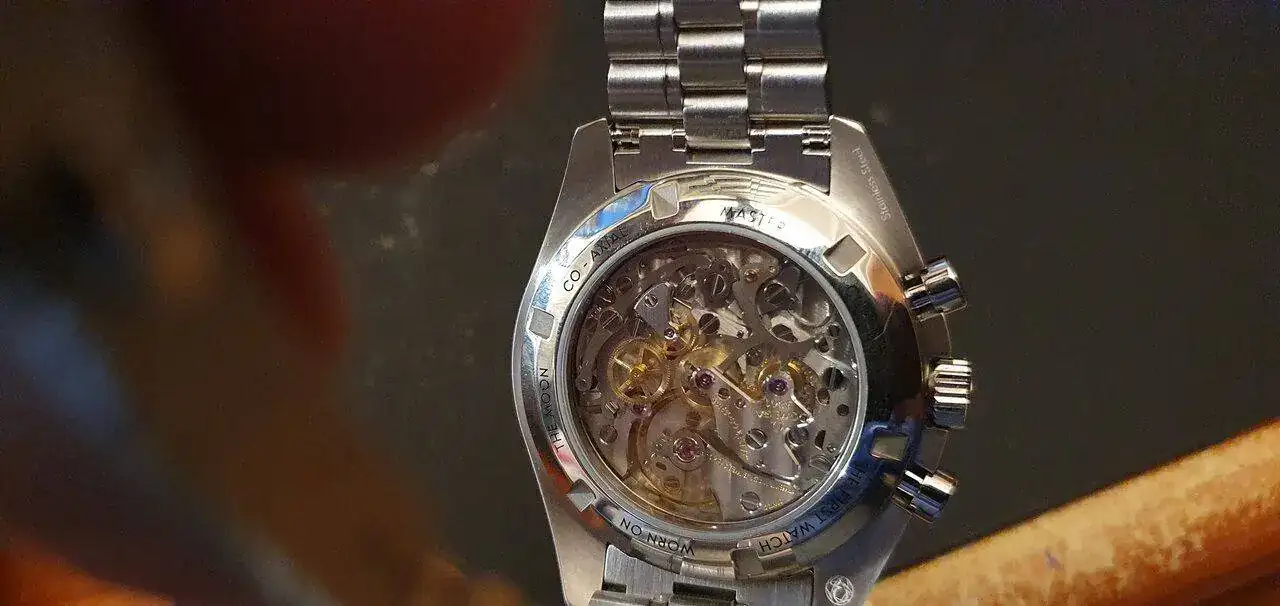 Se trata de un Speedy Moonwatch, plexy, fondo ciego y calibre 1861.