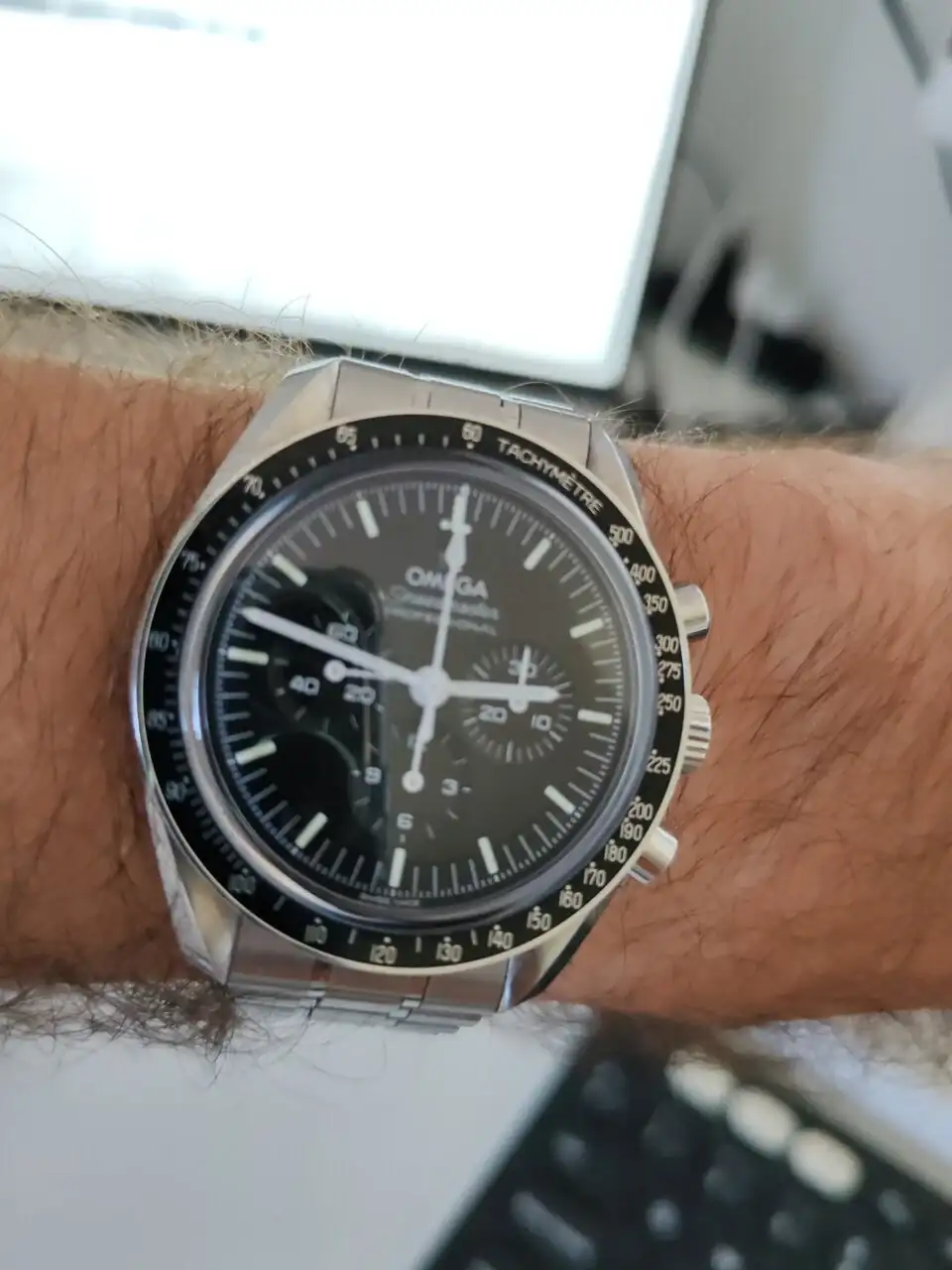 Enhorabuena por partida doble, ¡sobre todo por ese niño!! Algún día ese reloj será suyo… jajaja.Me presento por aquí. Después de años con la idea de adquirir un Speedmaster y debido a mi mini muñeca, dejo por aquí mi adquisición.
