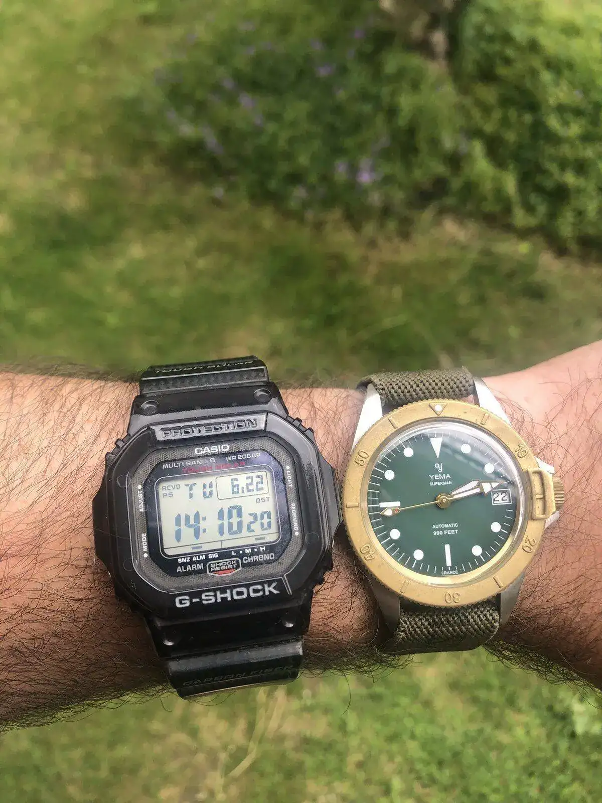 El reloj es alto, largo y pesado, pero ya me he acostumbrado y gracias a Dios tengo brazo para llevarlo, aunque está en mi límite de tamaño. Lo peor fue encontrar el ajuste del brazalete, pero una vez hecho dejó de molestarme e incluso alguna vez duermo con él puesto. Lo llevo casi todos los días puesto, incluso en casa. Un par de mm menos de L2L y endinks hembra y sería perfecto (y 1 mm menos de altura, tiene 16 y pico)