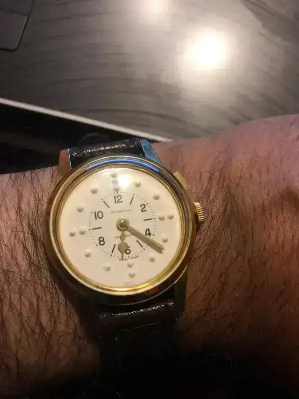 Existe un reloj braile extraordinario que se llama Dot watch, los vendía en mi clínica pero son muy costosos para muchas personas al igual que los Eone, aquí también existen relojes con lenguaje y con puntos o táctiles más económicos, a mí me encantan todos una maravilla para las personas que desarrollan otras capacidades.