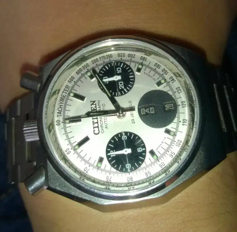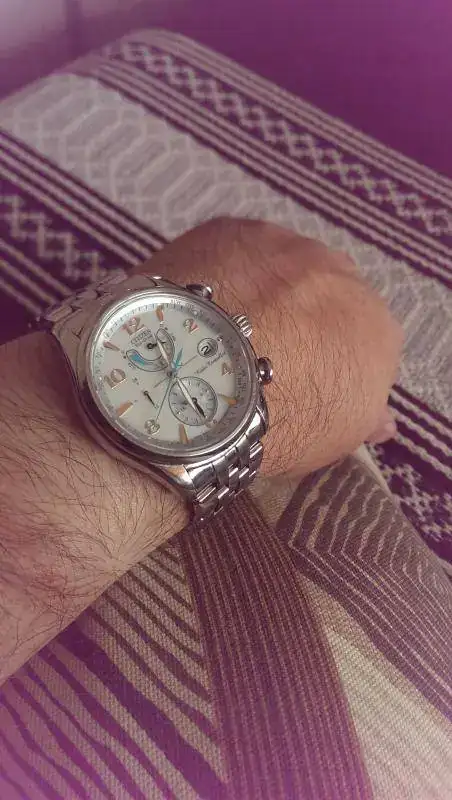 Es mi Citizen de todos los días, me ayuda mucho porque es calendario perpetuo, además de otras monadas como alarma, hora mundial, señal gráfica de batería (es Eco Drive) y es radiocontrolado. Estoy tentado de ponerle correa de piel.