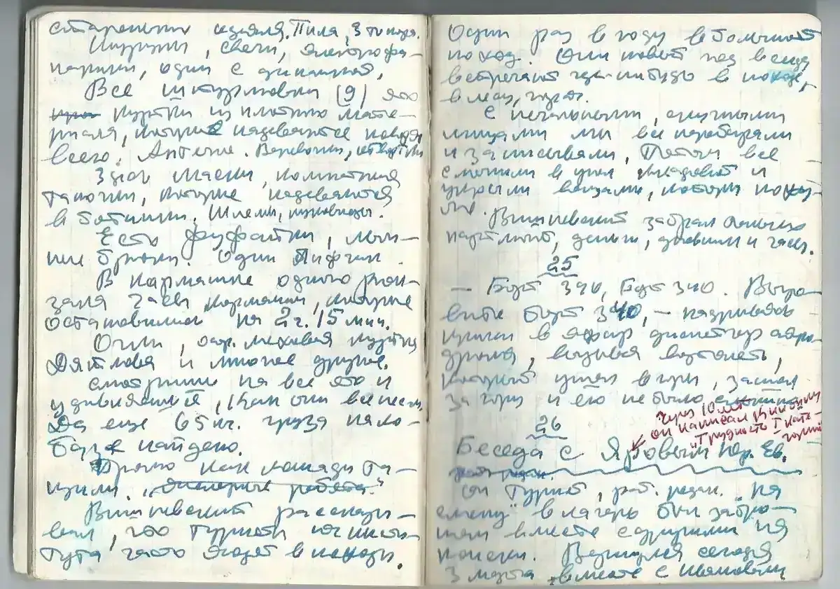 Cuaderno de G.K Grigoriev: “Hay un reloj de bolsillo en el bolsillo de una mochila, que se detuvo a las 2:15”