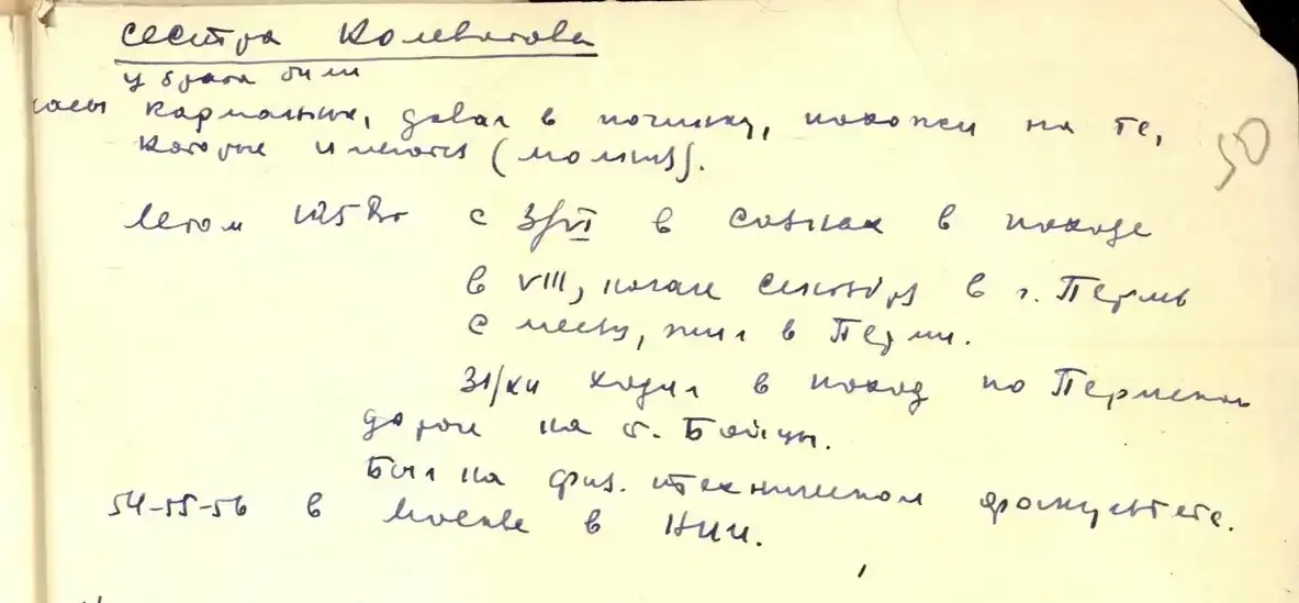 Registro de pertenecías entregadas a la familia por parte de Ivanov. La hermana de Kolevátov indica: “Mi hermano tenía un reloj de bolsillo, él mismo lo reparó, parecido a éste de aquí (Molnija).”