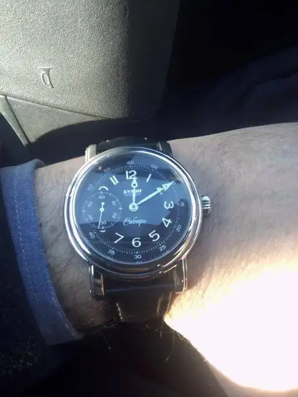 Y lo acabaré con el Buran Siberian de 45mm, 49mm con la corona. Movimiento 3602 de Molniya de origen Cortebert y Rolex.