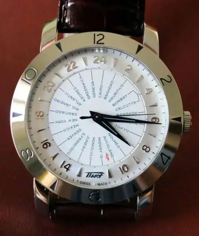 Bueno, pues me sorprende en tu foto que la hora que marca el disco en el, supuesto huso elegido, no coincida con la hora que marca el reloj. Fijaros en el Patek, en el Breitling o el FC y veréis como coincide y coincide siempre.