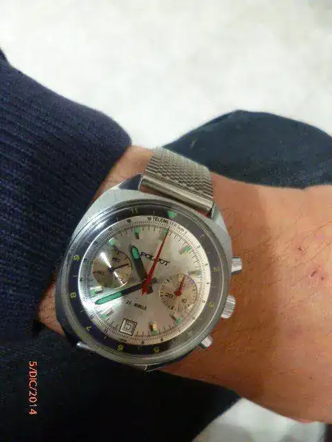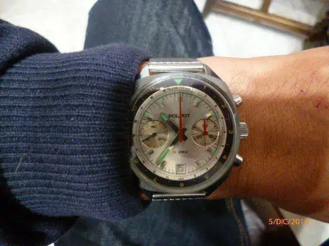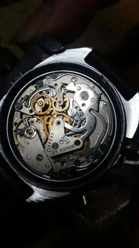 Hola Jorkey, este es un modelo vintage del 89; al ser un modelo civil, la caja es cromada, imagino que los pulsadores también;Los modelos destinados a los militares eran de acero inoxidable. el calibre 3133 es una versión mejorada del valjoux 7734,como hacen muchos suizos con los eta, con 6 rubies más, 21600 oscilaciones, en contra de las 18000 del valjoux y una reserva de marcha de casi 60h.Este calibre ha dejado de fabricarse y no se decirte si los que vende ahora Volmax, son de stock antiguo, o fabricación ruso-china...En los vintage, la calidad, está más que contrastada, son calibres muy precisos y robustos, pero hay que ir con mucho cuidado con los franken ucranianos... y su precio cada dia se cotiza más.Este modelo también tiene su historia espacial, al ser utilizado en la soyuz, si mal no recuerdo. Cuando tenga un poco más de tiempo ya le haré una buena revisión