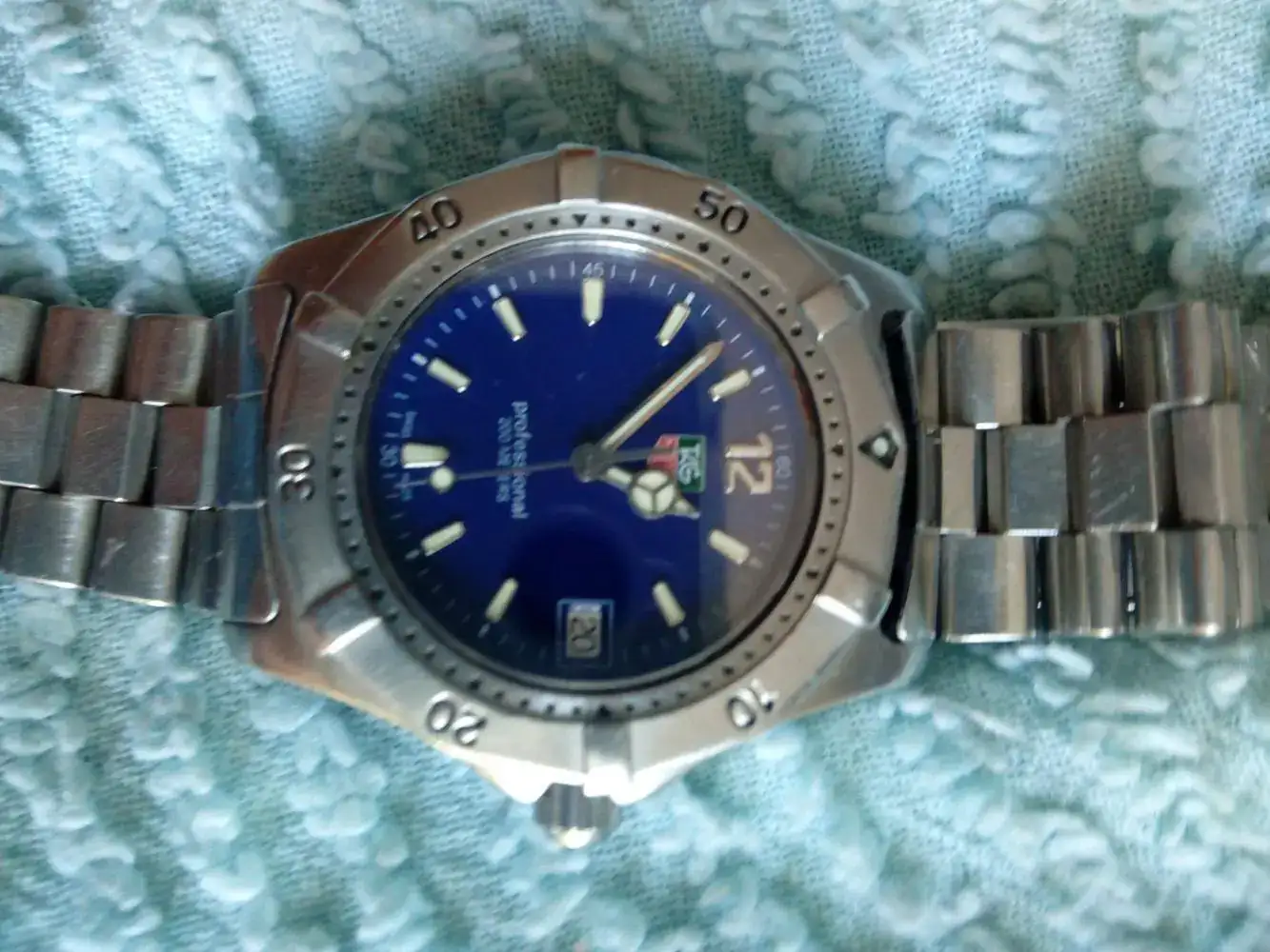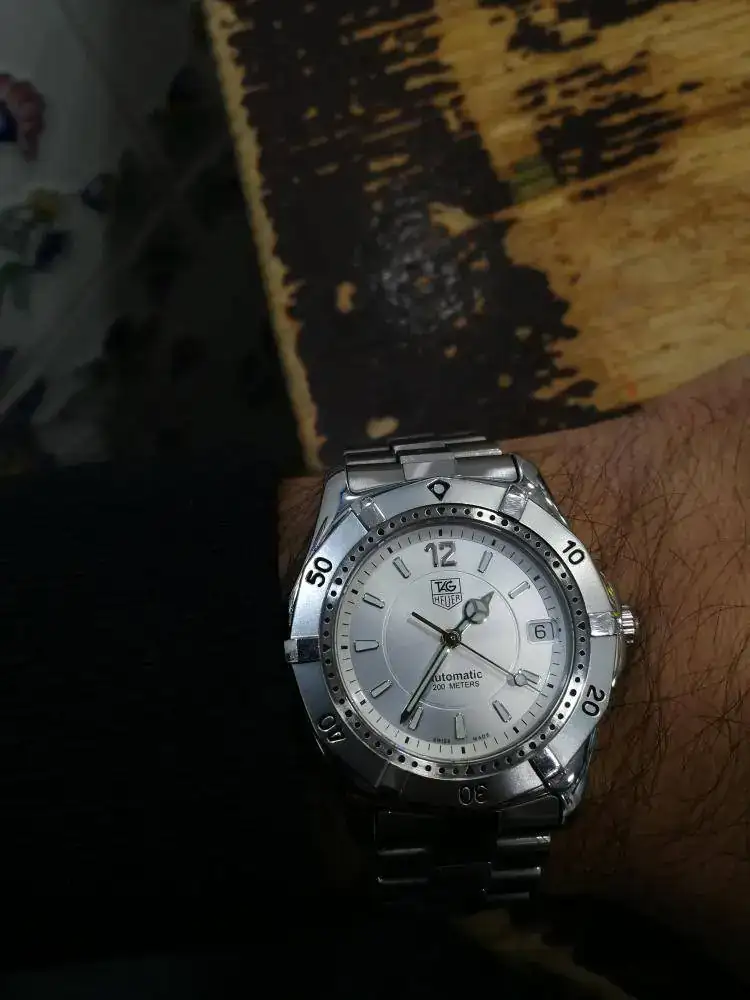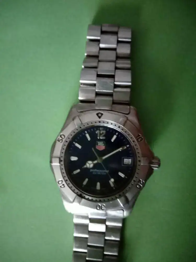 Este curtido por el polvo de mil batallas,como podeis ver por su aspecto externo,aunque con una marcha magnfica,como un buen cuarzo con un calibre ETA 955.112,mi tag heuer WK1113-0 de la serie professional 2000.