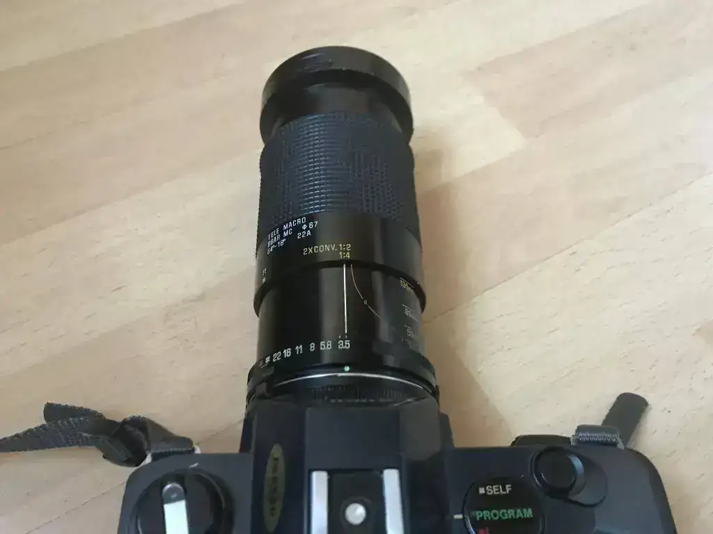 Canon T50 con objetivo Tamron tele macro 35-135mm F3,5-4,2 manual.