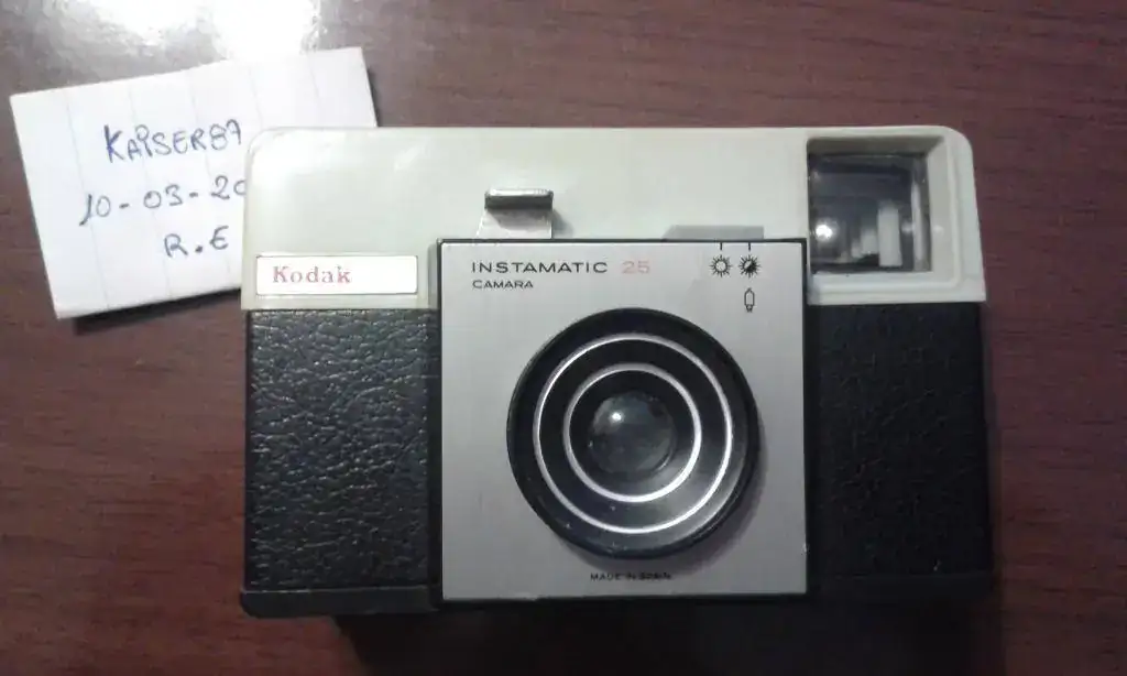 Kodak Instamatic 25 de 1966 con funda original, en muy buen estado tanto la cámara como la funda. Pasa lo mismo que la anterior que no se si funciona de ahi su precio 30€.
