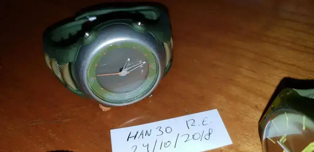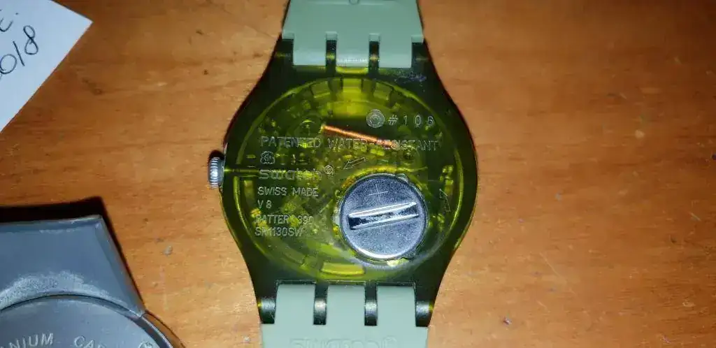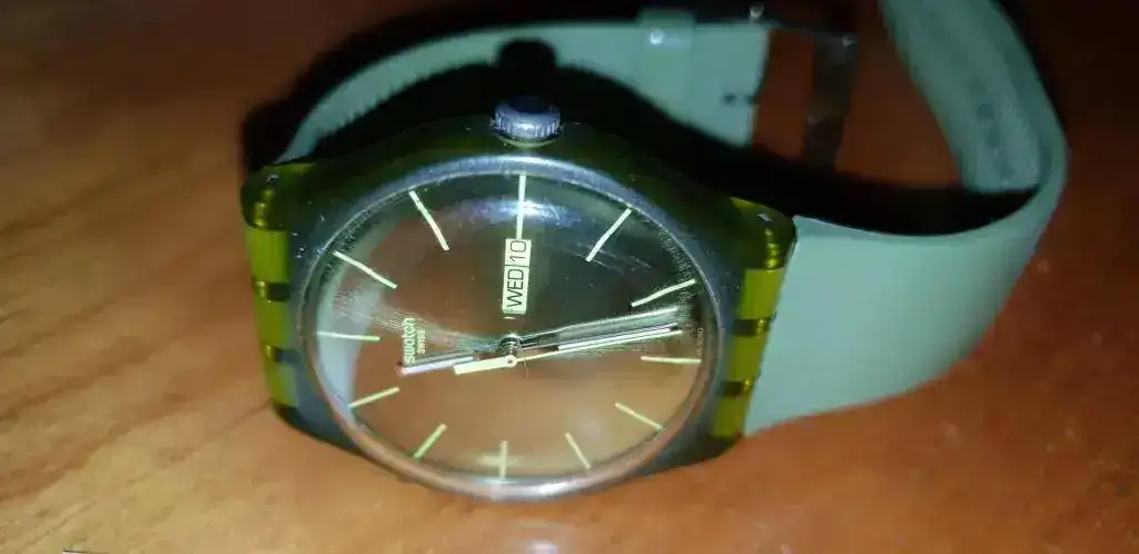 El Swatch es de color verde y de la serie Slim, en muy buen estado.