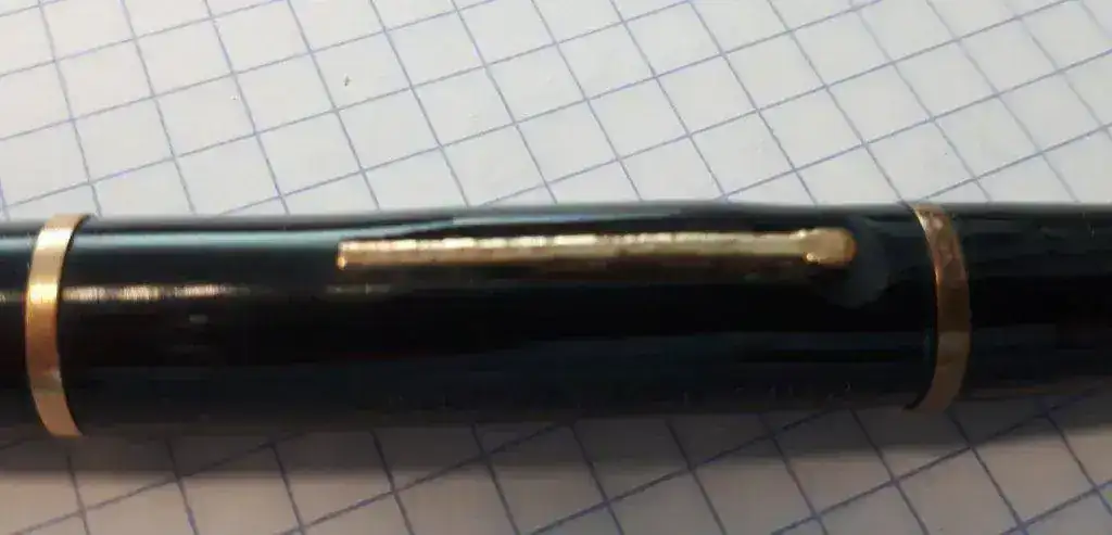 La compré con un clip plateado marca “Swan Clip Rº Nº 676026” seguramente perteneciente a otra pluma e incorporado posteriormente a esta. La incluyo en el lote y se puede ver en una foto.