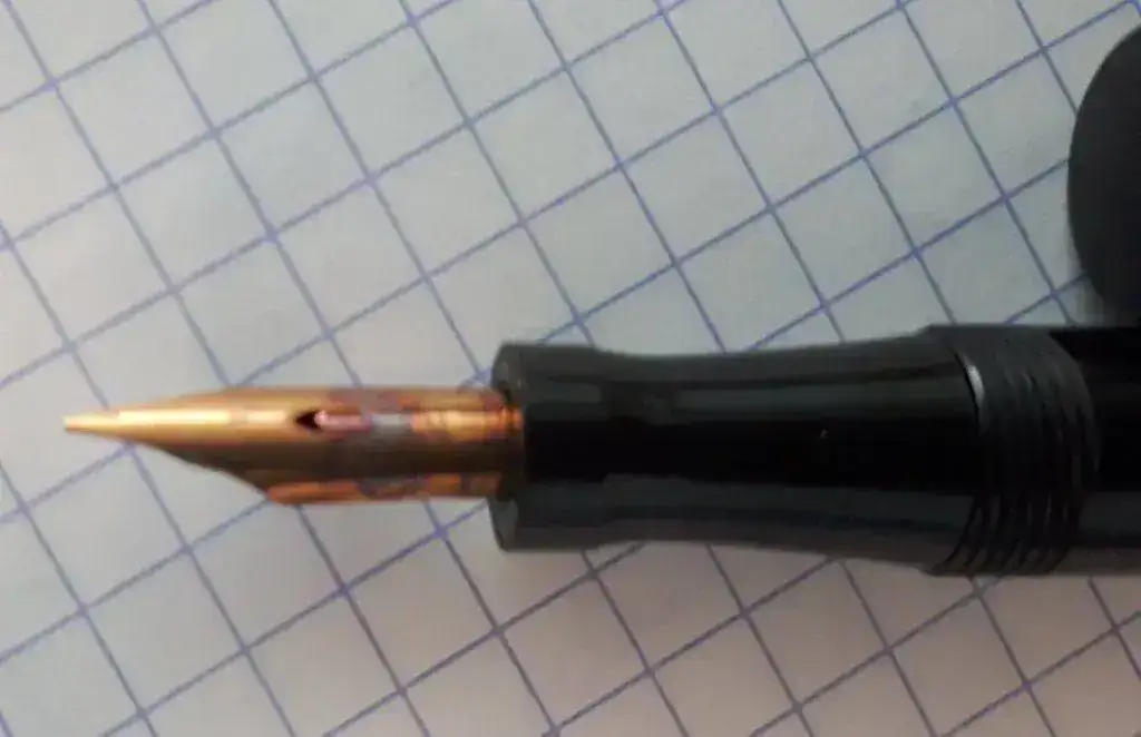 El plumín está afinado por Julia Gusano, que también me consiguió el convertido, bastante complicado de encontrar. Y me explicó que la corrosión quese ve alrededor del plumín en habitual en este tipo de plumas.