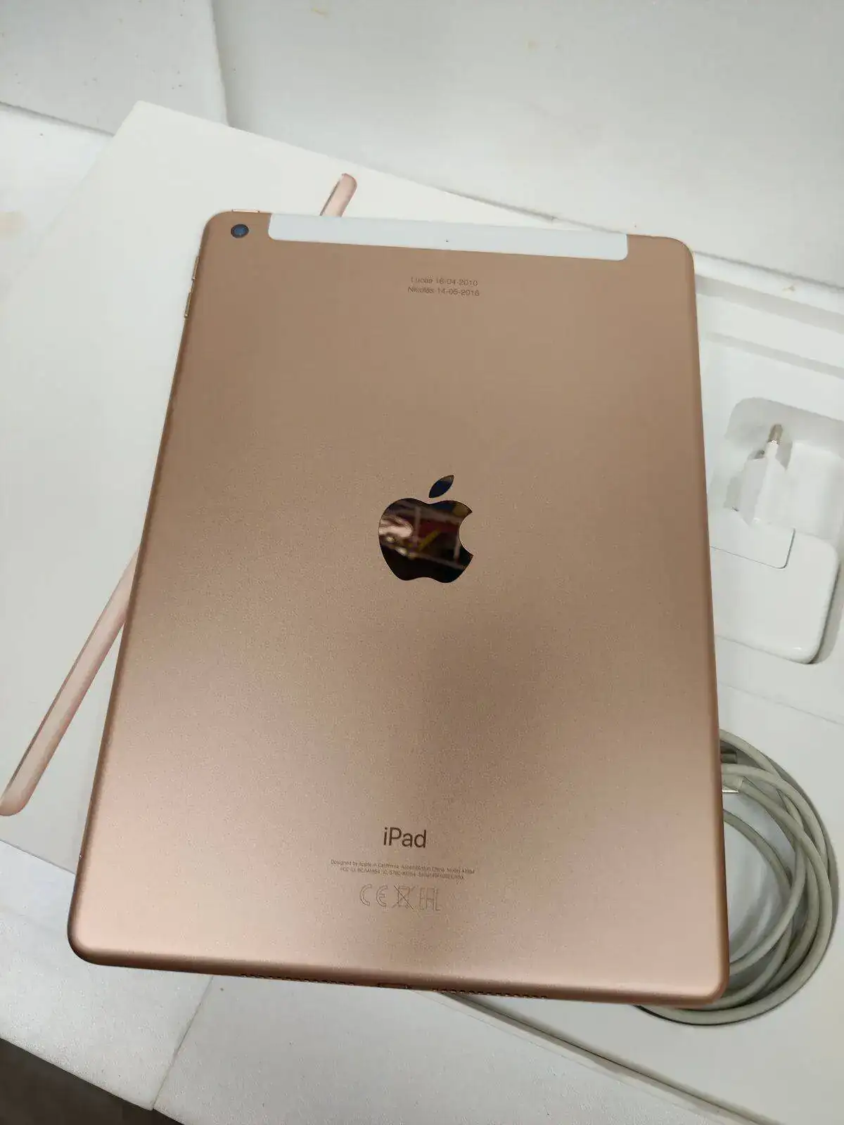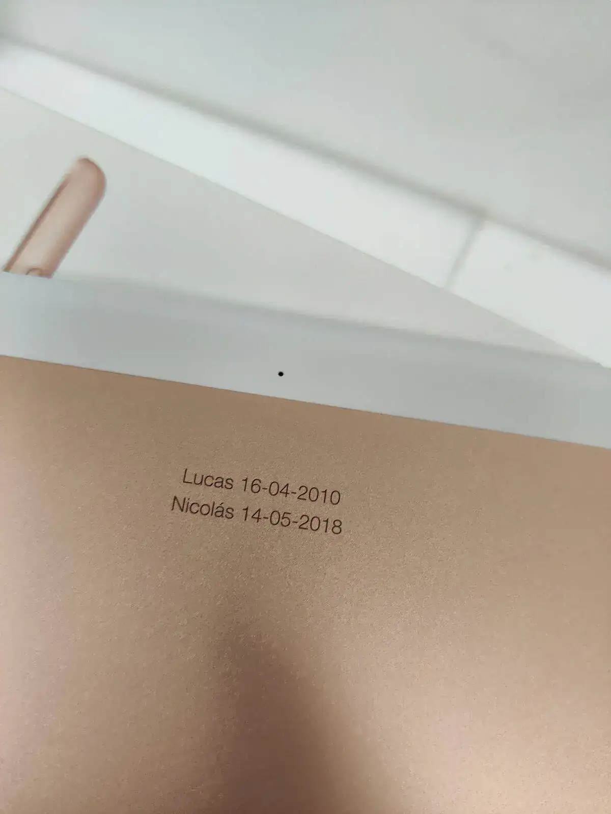 El iPad tiene en la parte trasera dos pequeñas inscripciones, ver foto. No considero que sea un problema, pero que cada uno lo considere como desee.