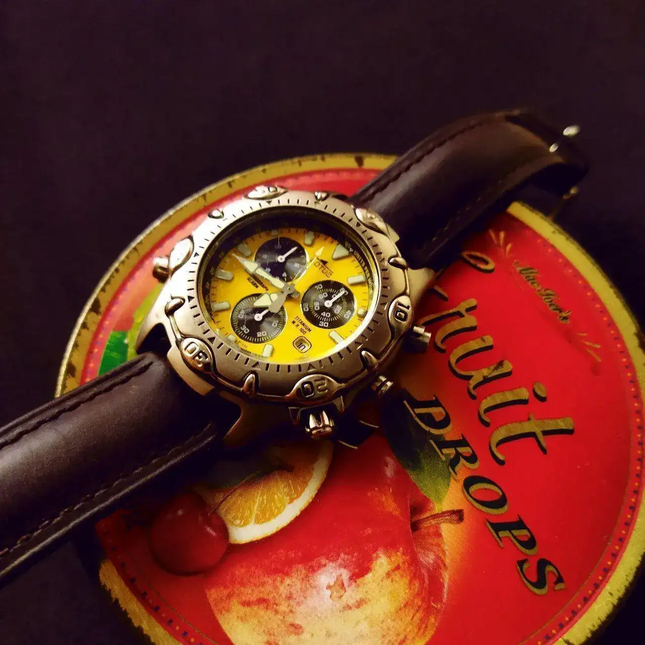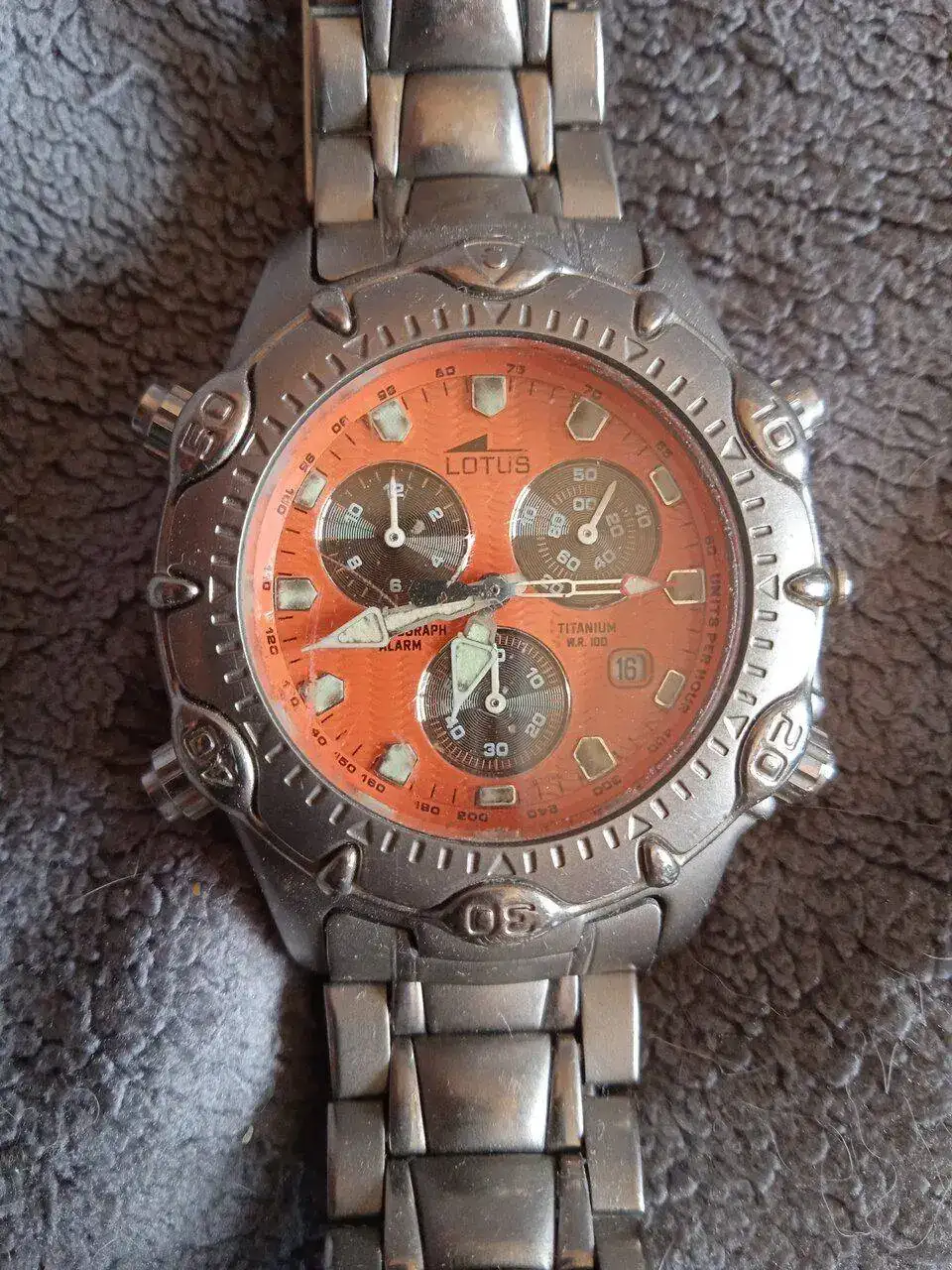 Mis cronos noventeros no son el tipo de reloj que más uso en verano, y menos este Lotus de titanio de esfera gris y negra, me gusta más para otoño e invierno, pero el otro día ojeando mis archivos de la marca, me encontré con la bonita publicidad espacial del Lotus Titanio, y me entraron muchas ganas de ponérmelo y enseñarlo aquí, que hay tantos foreros que saben apreciar estos relojes y varios que tienen este clásico. Llevo toda la semana con él puesto, incluso en sitios donde suelo ir solo con los sufridos Casio digitales, incluso mejor si son G-Shock.