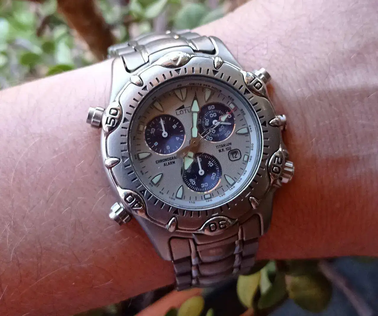 El otro Lotus muy chulo también, parece que lleva el Miyota OS80, un pelín más moderno, de finales de los 90 o alrededor del 2000 supongo. Me gusta mucho su modo de alarma con repetición, y con ese puntero tan chulo de la vieja escuela, como en un reloj despertador tradicional.