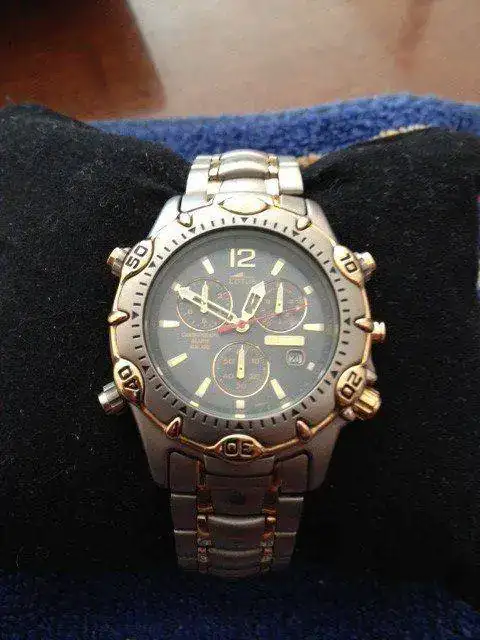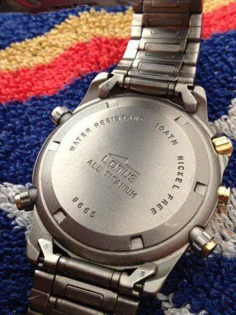 Hola a todos, para iniciarme en la venta os propongo un "odiado" foreramente hablando Lotus All Titanium bicolor.....el reloj fué comprado de 2ª mano y no dispongo de caja ni papeles, si manual...... ahora bien a mediados del pasado año (Septiembre si no recuerdo mal) lo llevé al SAT Festina-Lotus que hay en Madrid para que le pusiesen la tija que acciona/apaga la alarma, a lo que hubo que añadir un pulsador averiado, una pila nueva y la prueba de estanqueidad (me dieron un justificante pero no lo encuentro y pediré una copia si le sale comprador y este lo quiere) resultado total unos 65 euros.