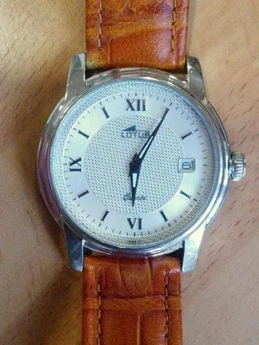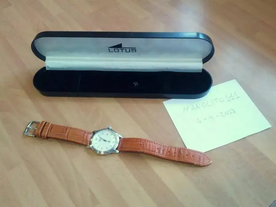 Hola amigos,vendo este Lotus Quartz sin segundero por 30 euros funcionando perfectamente.No acepto cambios para este reloj.Tiene caja de acero y cristal mineral.Es resistente al agua hasta 50m.Incluye su estuche y la correa está prácticamente nueva.Mide 38 mm con corona o 36 sin corona.Tiene una marquita en el cristal a las 12 que no he podido retratar en las fotos y micro arañazos que seguro salen con Cape Code.