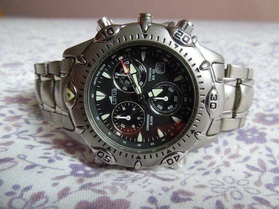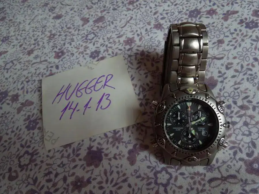 Reloj de cuarzo y titanio,funciona perfectamente y la pila esta cambiada hace pocos meses sin hermetismo.Tiene algunas marcas en el cristal las cuales se pueden apreciar bien en la segunda foto.