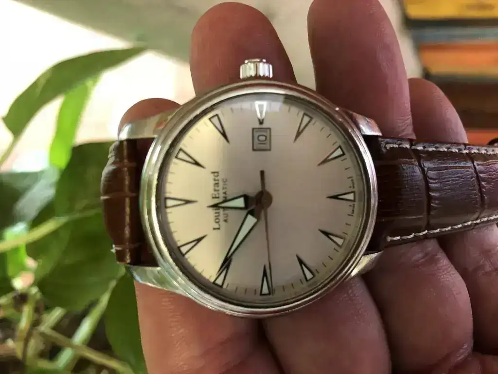 Saco a la venta este reloj Louis Erard, mnodelo Heritage automatico en buen estado aunque presenta marcas de uso en la caja (nada importante) y un pelillo en el cristal inapreciable a simple vista