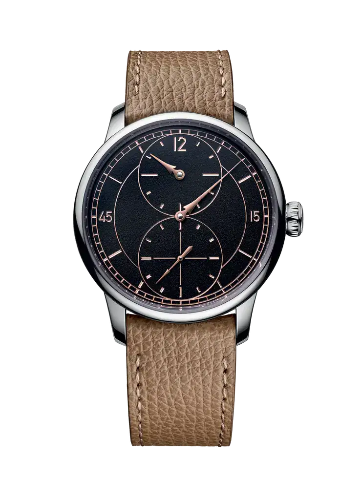 Los índices grabados y tratados con un acabado galvánico brillante, crean un sutil juego de relieves contra la esfera negra mate, todo ello alojado en una caja de acero pulido de 39 mm. Un diseño minimalista que garantiza una lectura clara de la hora. Como el resto de reguladores de la marca, el Le Régulateur Gravé Noir monta un calibre Sellita SW266-1