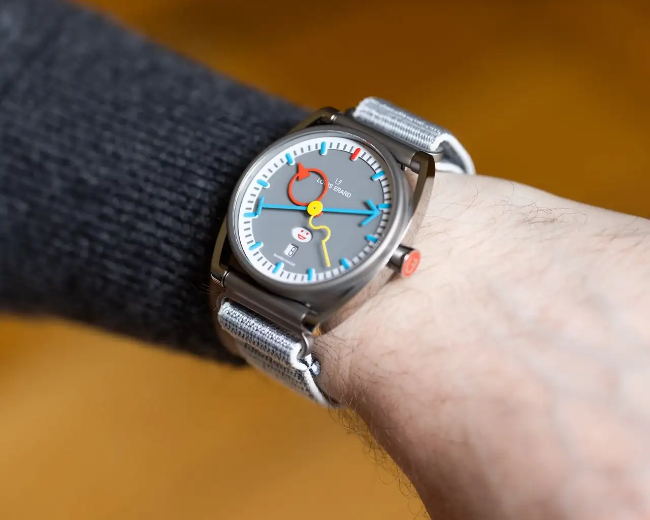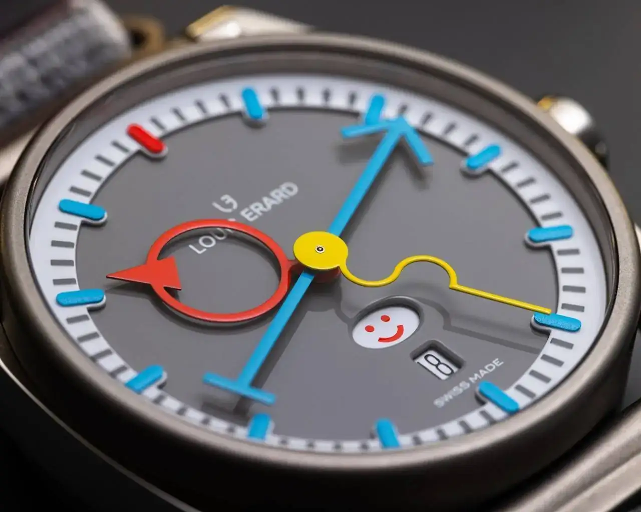 Alain Silberstein, el arquitecto metido a relojero en la década de los 80-90, regresa una vez más para colaborar con Louis Erard y proponer un calendario cuyos días son iconos con caritas cada vez más sonrientes a menudo que avanza la semana. El lunes no.