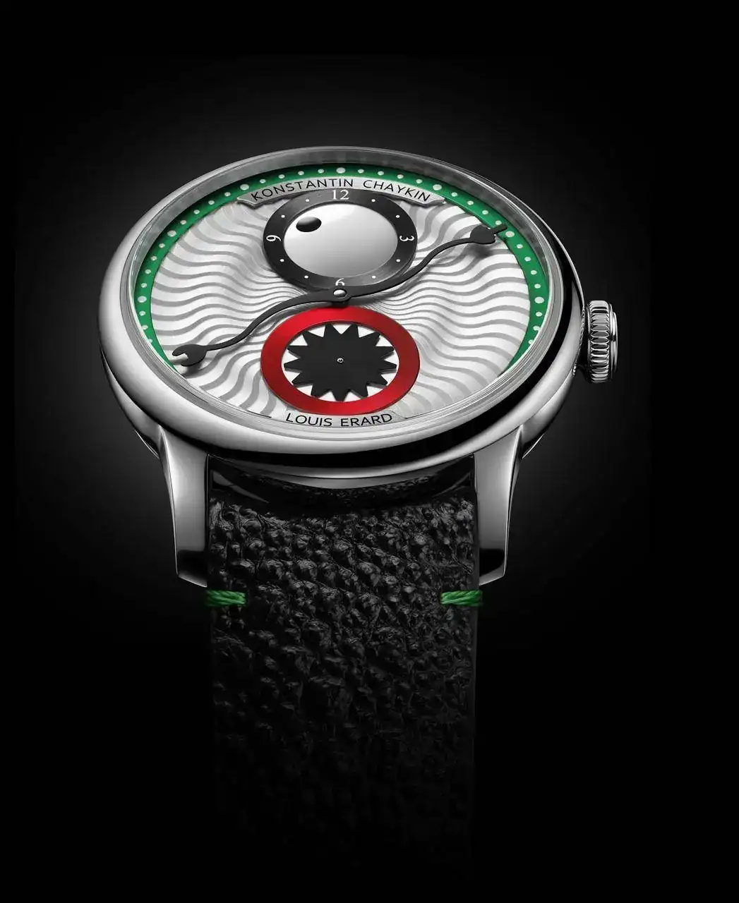 Chaikin tuvo carta blanca para plasmar su idea, con la única limitación de respetar la disposición de regulador de Louis Erard, con minutos centrales, segundos a las seis y las horas a las doce. El resultado parecería el único posible: Un amuleto protector contra los malos espíritus.