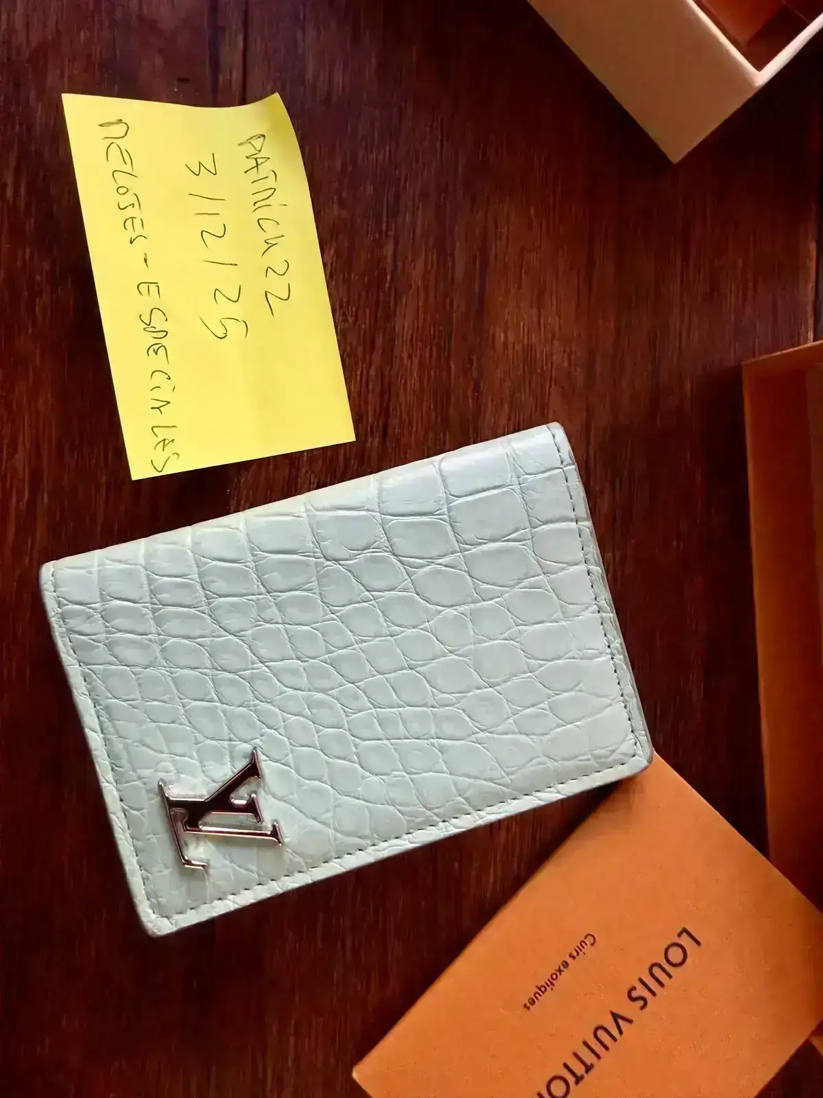 Cartera Louis Vuitton de cocodrilo color celeste.