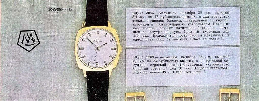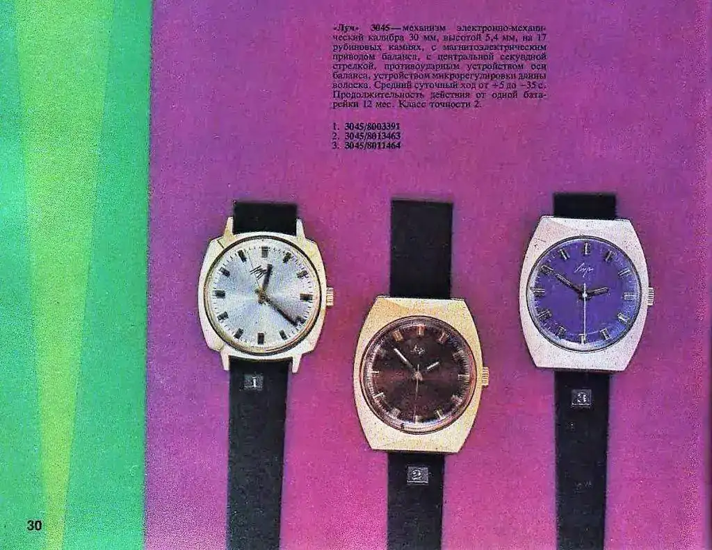 In 1971, prototypes of an electronicmechanical clock with a Luch-3045 balance engine were manufactured.In 1973, the delivery of these watches to trading organizationsbegan. The watch was produced in small quantities.