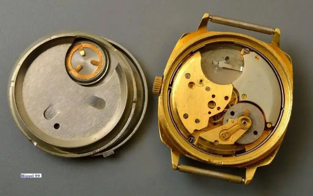 Cuando la corriente de 1,3V llega al volante, se crea un campo electromagnético en la primera bobina que arrastra a la segunda y esta a su vez conmuta el transistor. El transistor al conmutarse controla los electro-imanes que actúan sobre la espiral y así hasta que se agota la batería (sustituta del antiguo principio del péndulo magnético)1 El calibre va protegido por una tapa de hierro antimagnético, que lo protegía de las fluctuaciones magnéticas del exterior. En su libro Kharitonchuk; pág. 262 y ss nos advierte de la dificultad de reparación de estos sistemas1