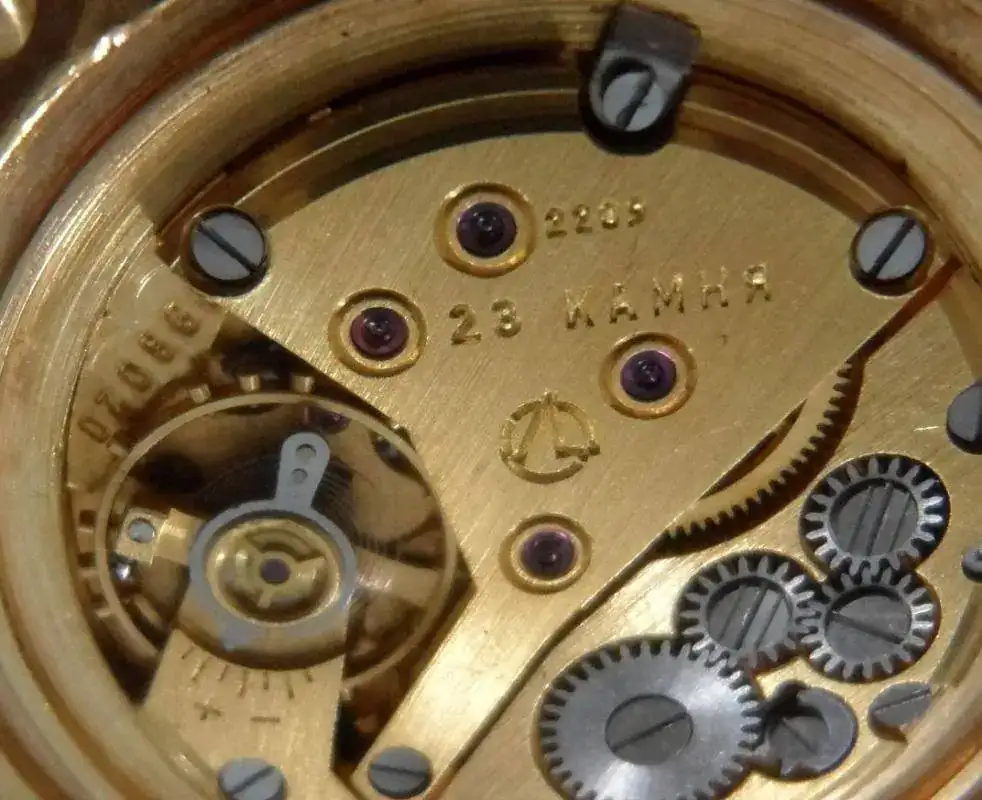 Todos los demás movimientos 2209 soviéticos también son movimientos de 22 mm pero no están relacionados con el 'ultradelgado' introducido por el 1. ° Vigilancia de Moscú. Algunos son ciertamente muy delgados, como Raketa uno es incluso más delgado, pero es un movimiento completamente diferente. En general, el código 2209 indica el diámetro del movimiento (en nuestro caso 22 mm) y los segundos dos dígitos describen las complicaciones del movimiento. 09 significa segundero central con protección contra golpes. La mayoría de los códigos de casos se pueden encontrar