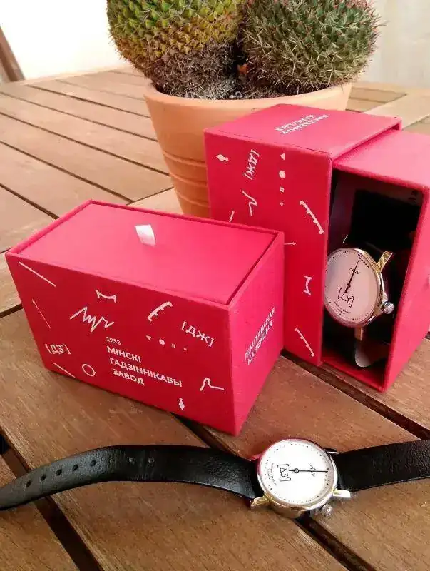 Los relojes vienen presentados sin mucha parafernalia, al estilo ruso, en una caja de cartón roja con signos grabados que al menos cumple en originalidad.