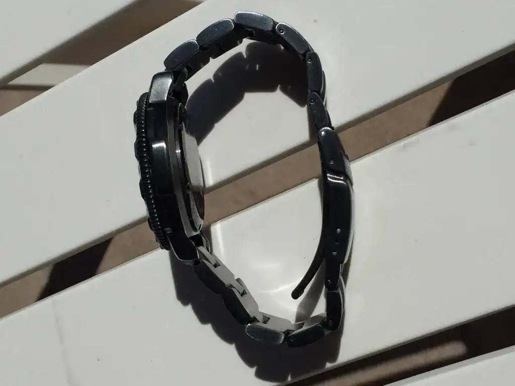 El reloj está en muy buen estado, a reseñar un pequeño pelo en el bisel entre las 8 y las 10, fino, pero ahí está. La caja, el cristal de zafiro y la trasera, impolutos.