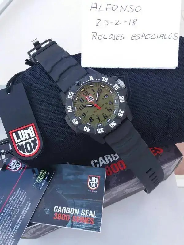 Es un Luminox carbón seal 3800 series (nada que ver con el normal). Es una pieza casi de estreno, usada en tres ocasiones y en cortos periodos, está como si la estrenas tu. Es una serie especial con 46mm, zafiro y 300 wr. Todo un reloj comando!!!!