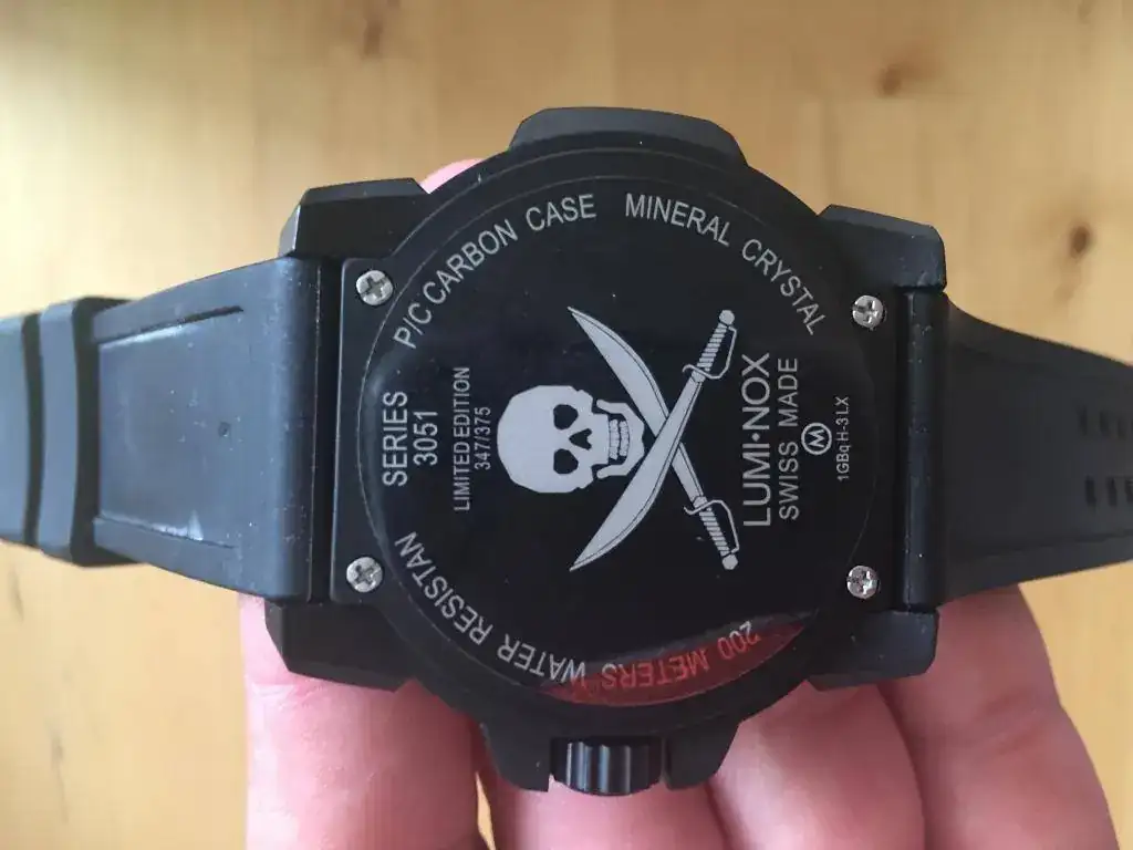Vendo un Luminox edición limitada a 375 unidades (casi imposible de conseguir ya en tienda). Se trata de la edición. Jolly Roger, en conmemoración a la bandera pirata. Por ello lleva la típica calavera con las espadas cruzadas en el dial y en la tapa trasera.