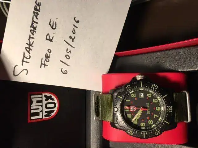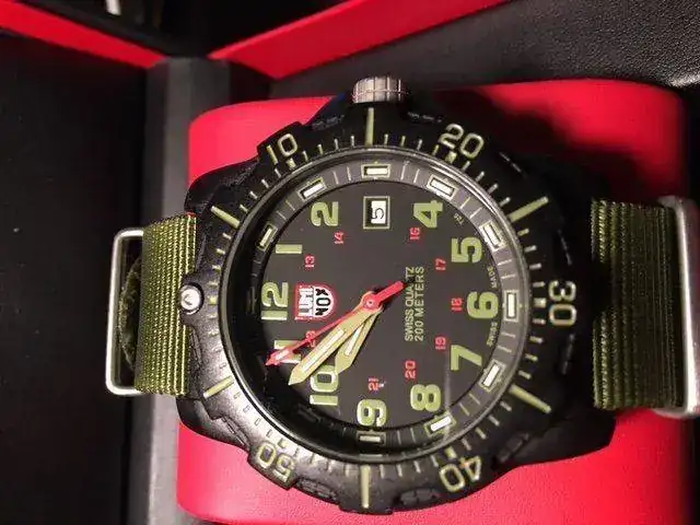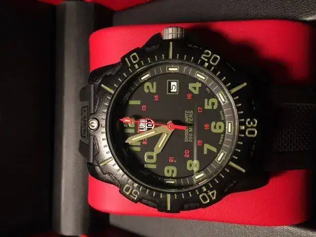 Se trata de una edición limitada que sacó Luminox muy dificil de encontrar a día de hoy, y máximo en este estado. Su estado es muy bueno, caja y cristal impolutos. Tan solo el cristal tiene una minúscula marquita a la derecha del nueve, no perceptible a simple vista, pero que ahí está. He intentado que se observe en la foto. Las características de este reloj son: fechador a las tres, movimiento de cuarzo, diametro de 45mm contando corona, material carbono, bisel rotatorio unidireccional, fondo grabado atornillado, cristal mineral reforzado, 200 metros, 25 tubos de borosilicato de visión nocturna (es espectacular verlo por la noche).
