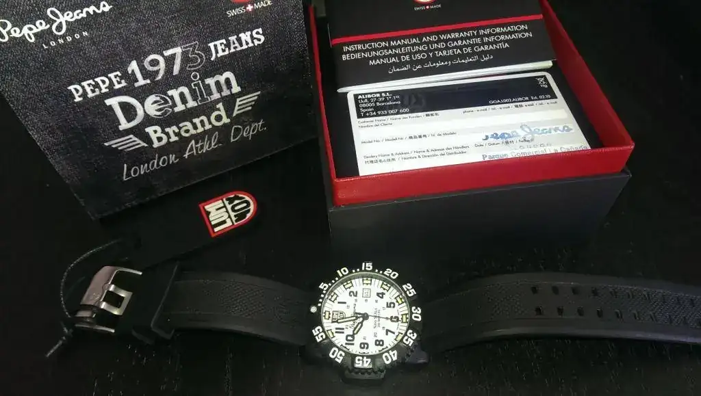 Dotación Completa: Caja cartón exterior (Pepe Jeans/Luminox). Caja Interior Luminox, etiqueta de goma de Luminox, Libro Instrucciones y tarjeta de garantía sellada y no fechada.