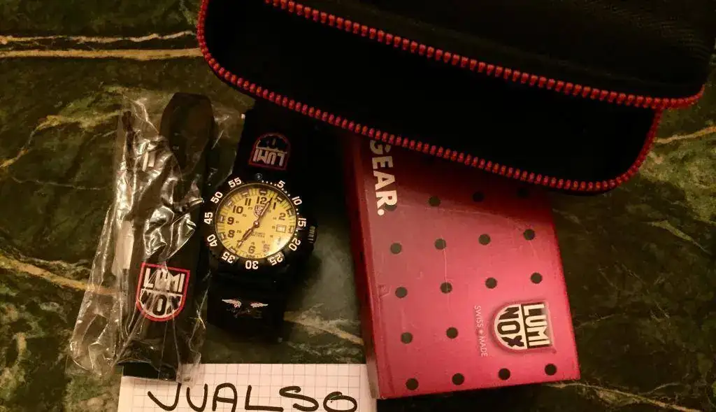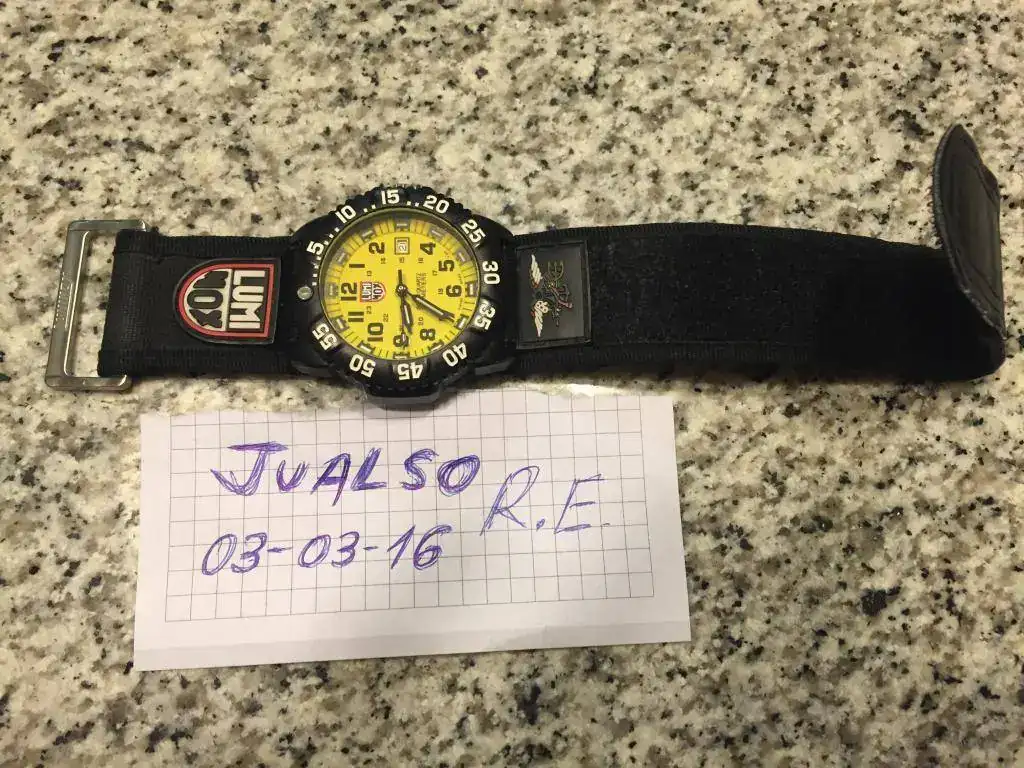 Pues pongo a la venta este Luminox 3955 amarillo. El reloj va con dos correas originales. La de velcro, que es con la que iba y la de material plastico (pu) tipo caucho que no he usado nunca. El reloj fue comprado en el foro y su estado es muy bueno, sin nada que reseñar por el poco uso que le he dado, motivo de ponerlo a la venta