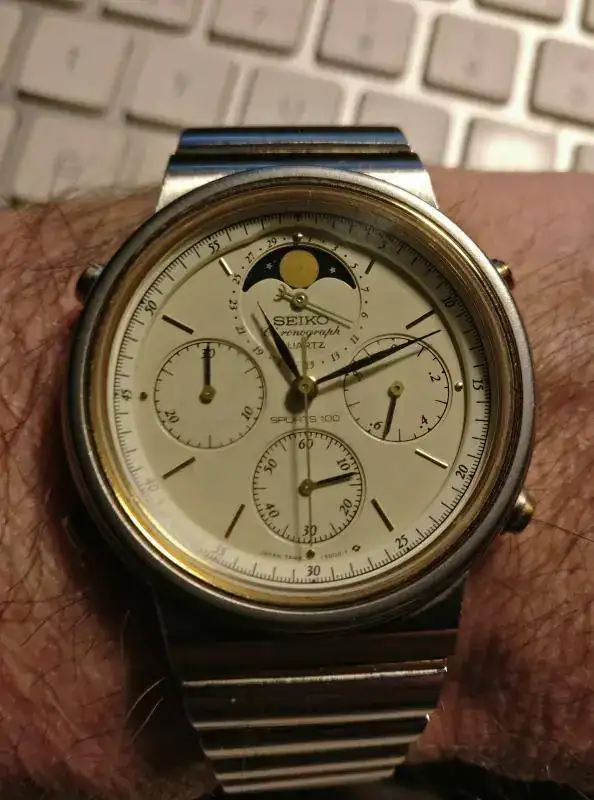 31 años marcando las fases de luna. Supongo que por el foro hay gente aficionada a este tipo de complicación. Yo sólo tengo este humilde Seiko con fase de luna, seguro que en el foro habrá muchos acechando el eclipse de la madrugada del 10-11 de febrero de 2017.