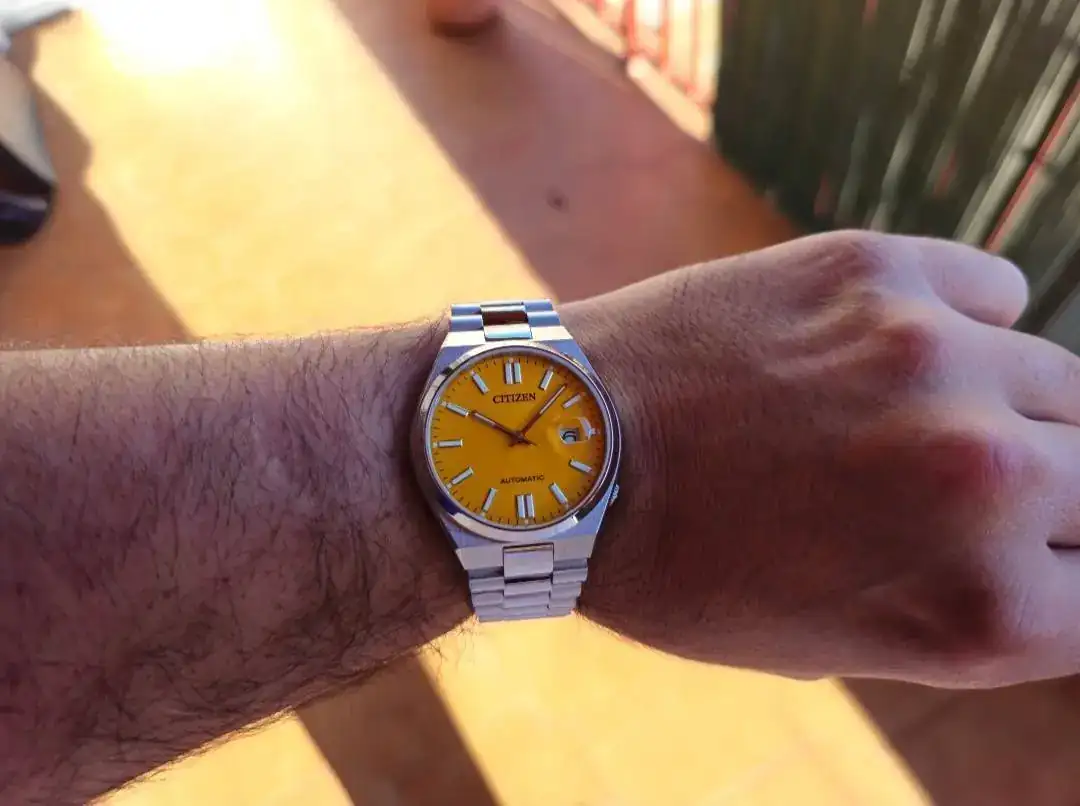 A mi me gustan los relojes "con cicatrices"(que se vea que "han vivido"lo suyo)Que no quita para que se intente conservar lo mas optimo posibleEste era de mi suegro. Data de 1973 y funciona perfectamente, a pesar del trote que ha sufrido y que se nota en su cristal
