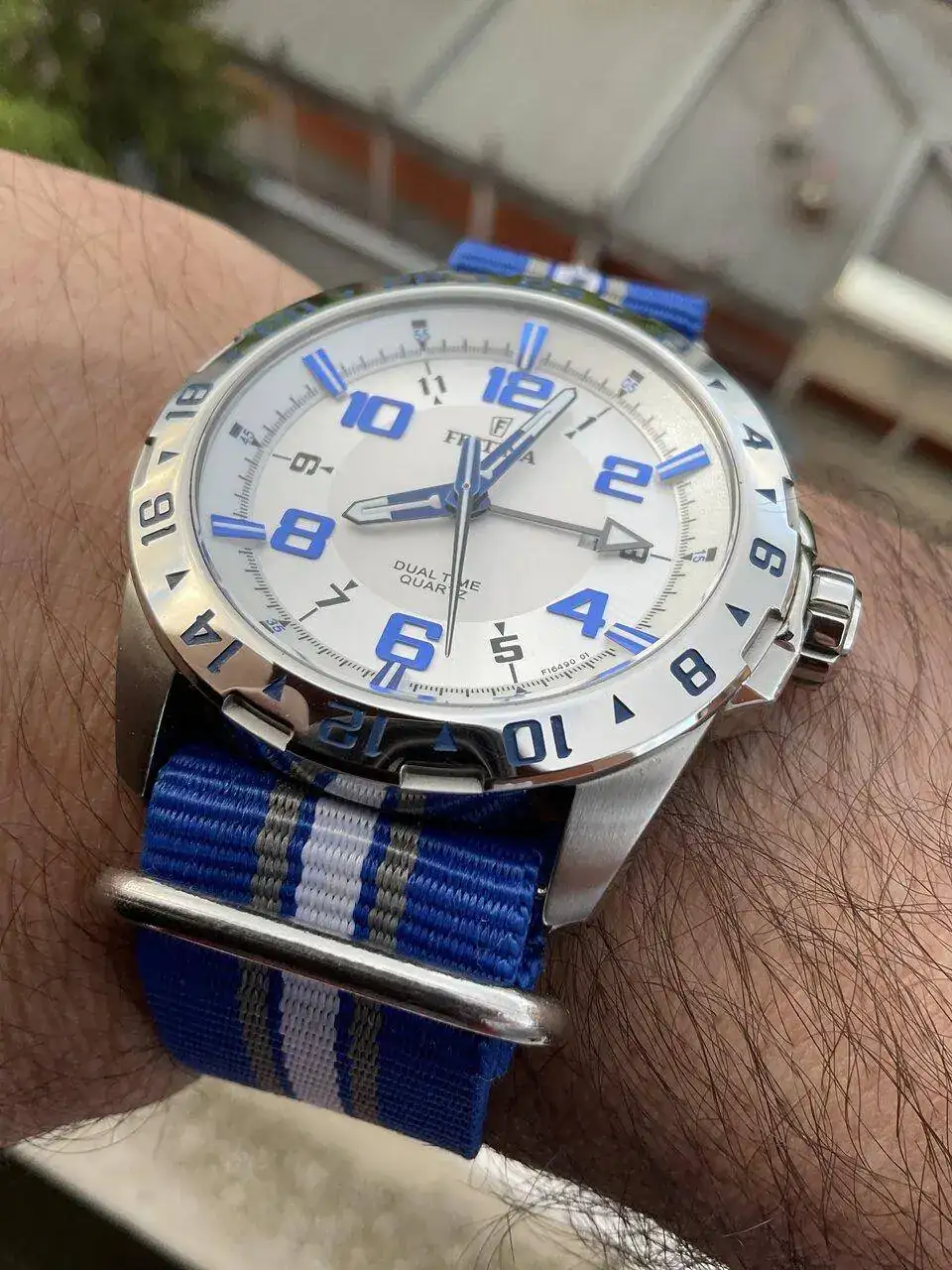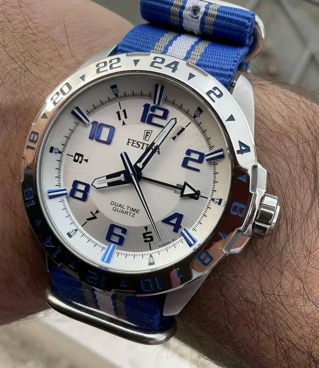 Muy bonito ese festina. Y la nato que has elegido le queda clavadaHoy con un Festina Dual time,el Silver Fox ltd ed.Regulacion a traves de la aguja de las 12 horas,no de la gmt