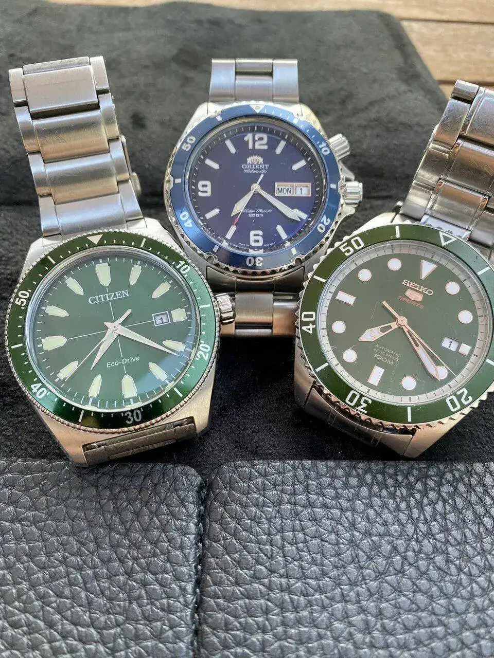 Mi hijo Gerard por su trio de ases, Seiko Sport 5, Citizen Eco drive y Orient Mako.
