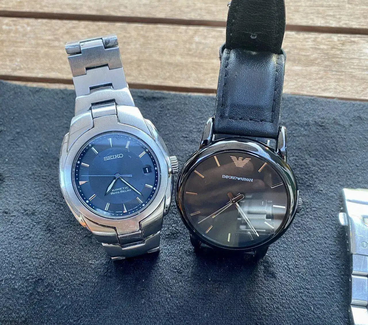 Mi hijo Adrià por el Seiko kinetic y el Emporio Armani.