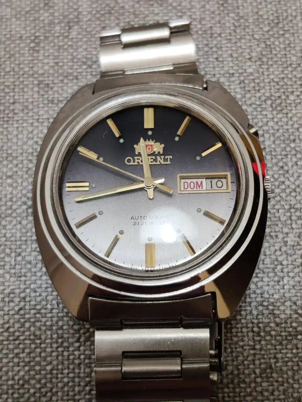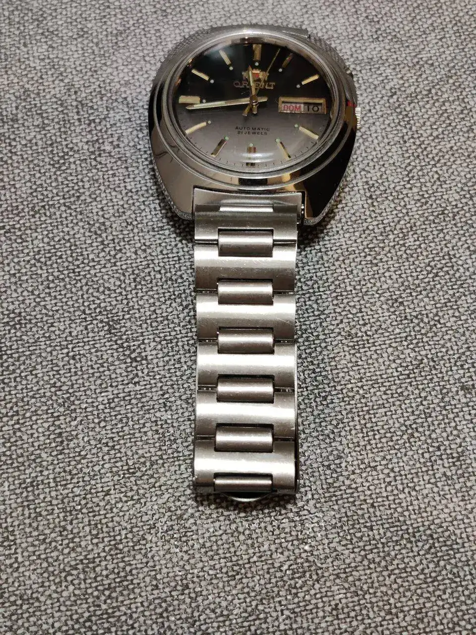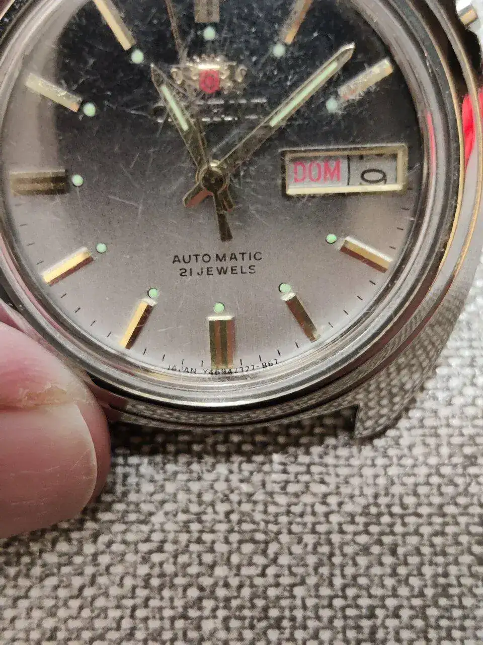 Pues muy bonito Orient, un buen regalo de tu padre. A cuidarlo!Buenos días, dado que he vuelto a retomar mi afición por los relojes, este fin de semana tuve una grata sorpresa cuando mi padre me dio un reloj que llevaba más de 30 años guardado en un cajón, el cual apenas había usado, Ver el archivos adjunto 2616724cuando vi que era un Orient automático me encantó, el estado era bastante bueno, aunque le di unos cuantos mimos, limpieza del armis original, retirada de la pegatina que aún llevaba en la tapa trasera y pulido del plexiglass, la verdad que muy contento con el resultado y con la marcha del reloj, os adjunto unas cuantas fotos... Saludos