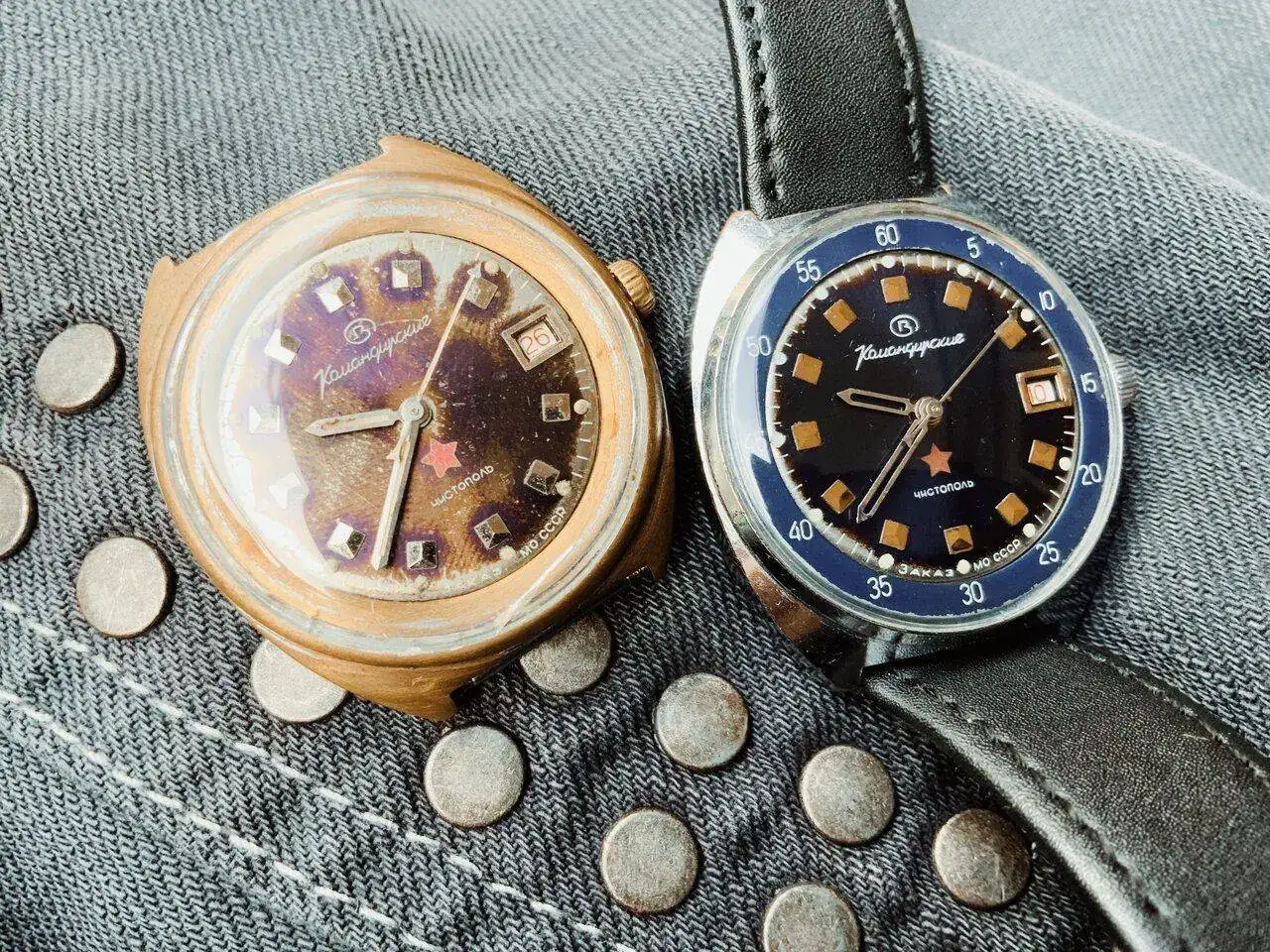 Komandirskie de tercera ola (primeros años 80). Calibre Vostok 2234 con parada de segundero.